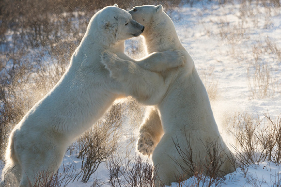 처칠에서 포착된 수컷 북극곰 두 마리. [사진=Elisabeth Kruger/ WWF]
