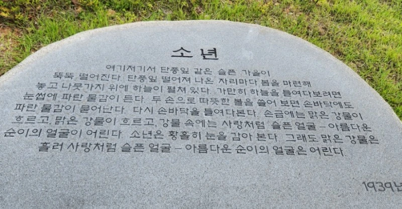 ― 그러나 겨울이 지나고 나의 별에도 봄이 오면, 무덤 위에 파란 잔디가 피어나듯이 내 이름자 묻힌 언덕 위에도 자랑처럼 풀이 무성할 게외다
