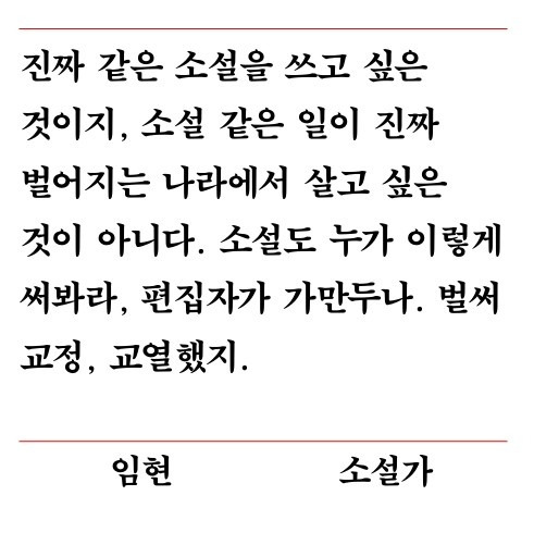 소설가 박상영은 “한반도의 평화와 안녕을 기원합니다. 대통령 윤석열을 파면하라”라고 했다. 임현은 “진짜 같은 소설을 쓰고 싶은 것이지, 소설 같은 일이 진짜 벌어지는 나라에서 살고 싶은 것이 아니다. 소설도 누가 이렇게 써봐라, 편집자가 가만두나. 벌써 교정, 교열했지”라고 했다.