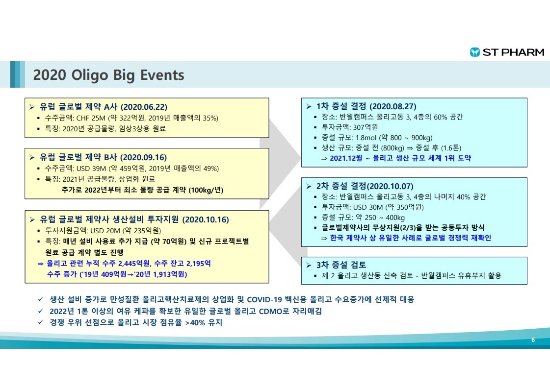 - 올리고 수주 증가와 설비 증설(3차 증설 검토)