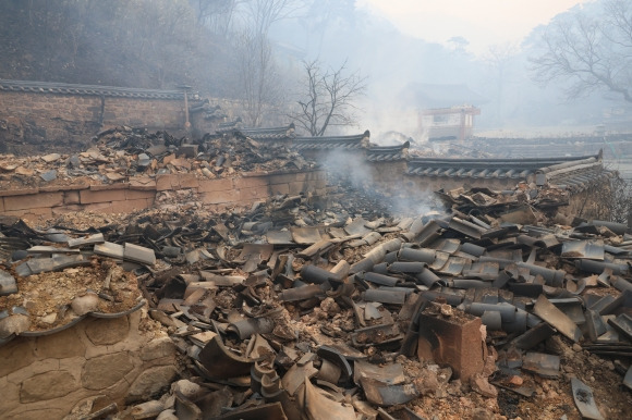 경북 의성에서 시작된 산불이 ‘천년고찰’ 고운사를 집어삼키면서, 보물로 지정된 건축물도 모두 잿더미가 됐다. 제 모습을 찾기 어려울 만큼 피해가 큰 상태라 보물 지위를 유지할 수 있을지 주목된다.