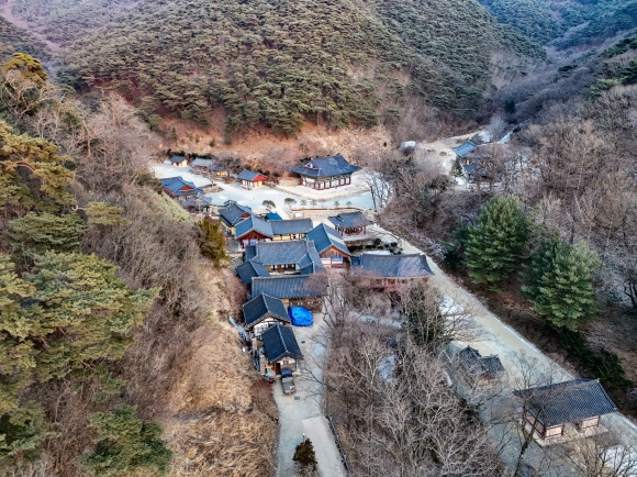 산불로 전소되기 전 의성 고운사 - 지난 2월 11일 촬영한 경북 의성군 단촌면 대한불교조계종 제16교구 본사 고운사의 가운루와 우화루, 대웅전 등의 전각과 등운산. 고운사는 지난 25일 의성 지역의 대형 산불로 전각들이 전소됐다. 2025.3.26 연합뉴스