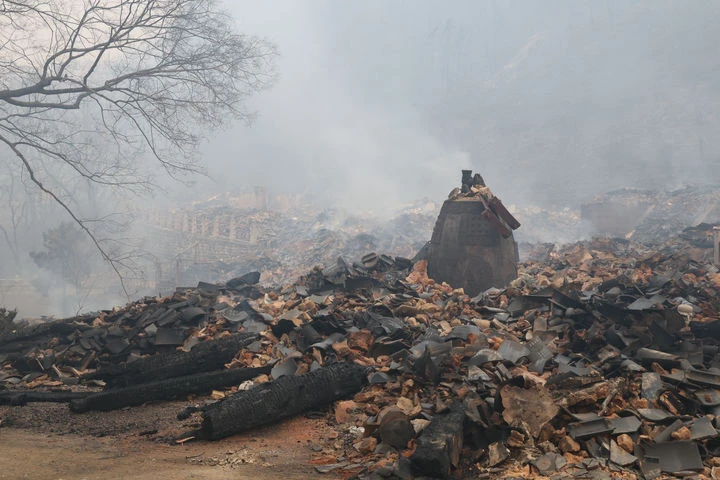 고운사 보물 연수전 전소 - 26일 오전 경북 의성군 고운사 연수전이 불에 타 형태조차 알아볼 수 없게 무너져 있다. 국가 지정 문화유산 보물로 지정된 연수전은 전날 고운사를 덮친 산불에 타 전소됐다. 2025.3.26 연합뉴스