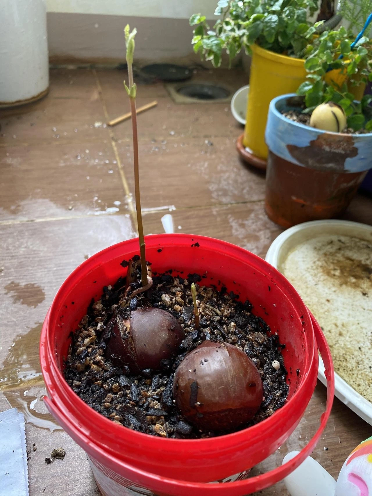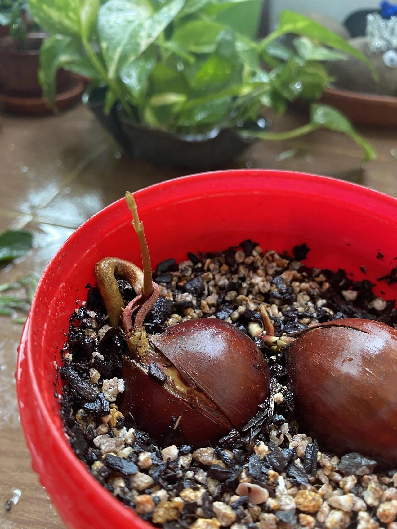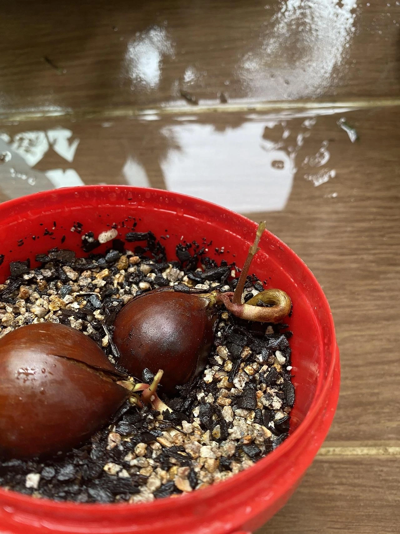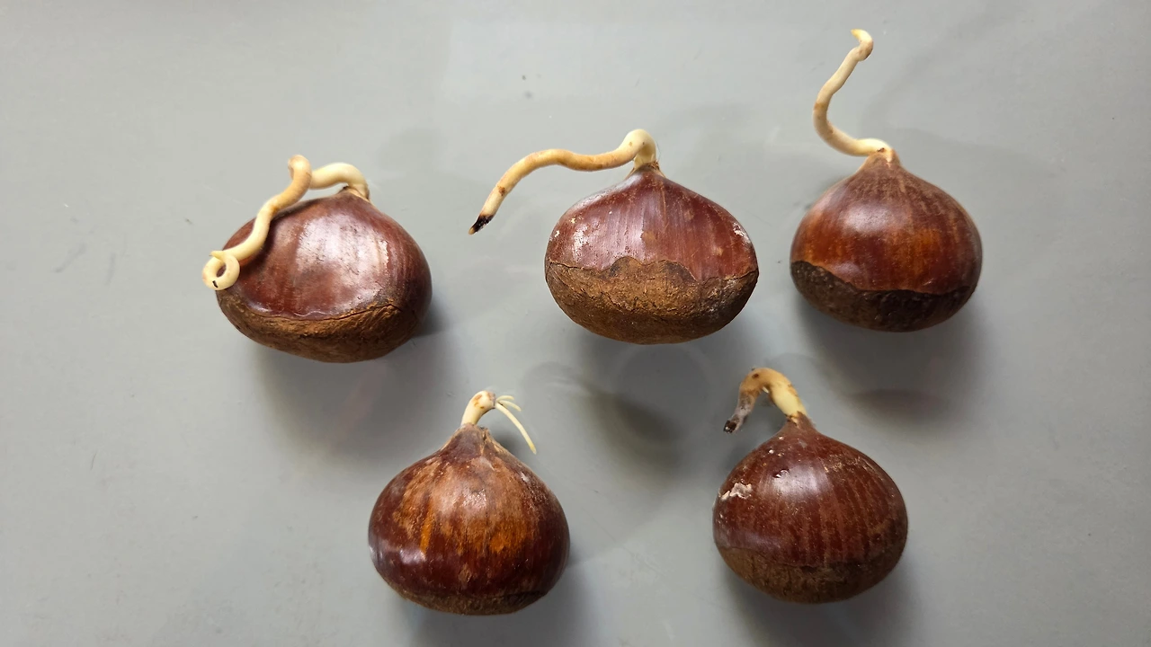 밤의 새싹이 돋아있다