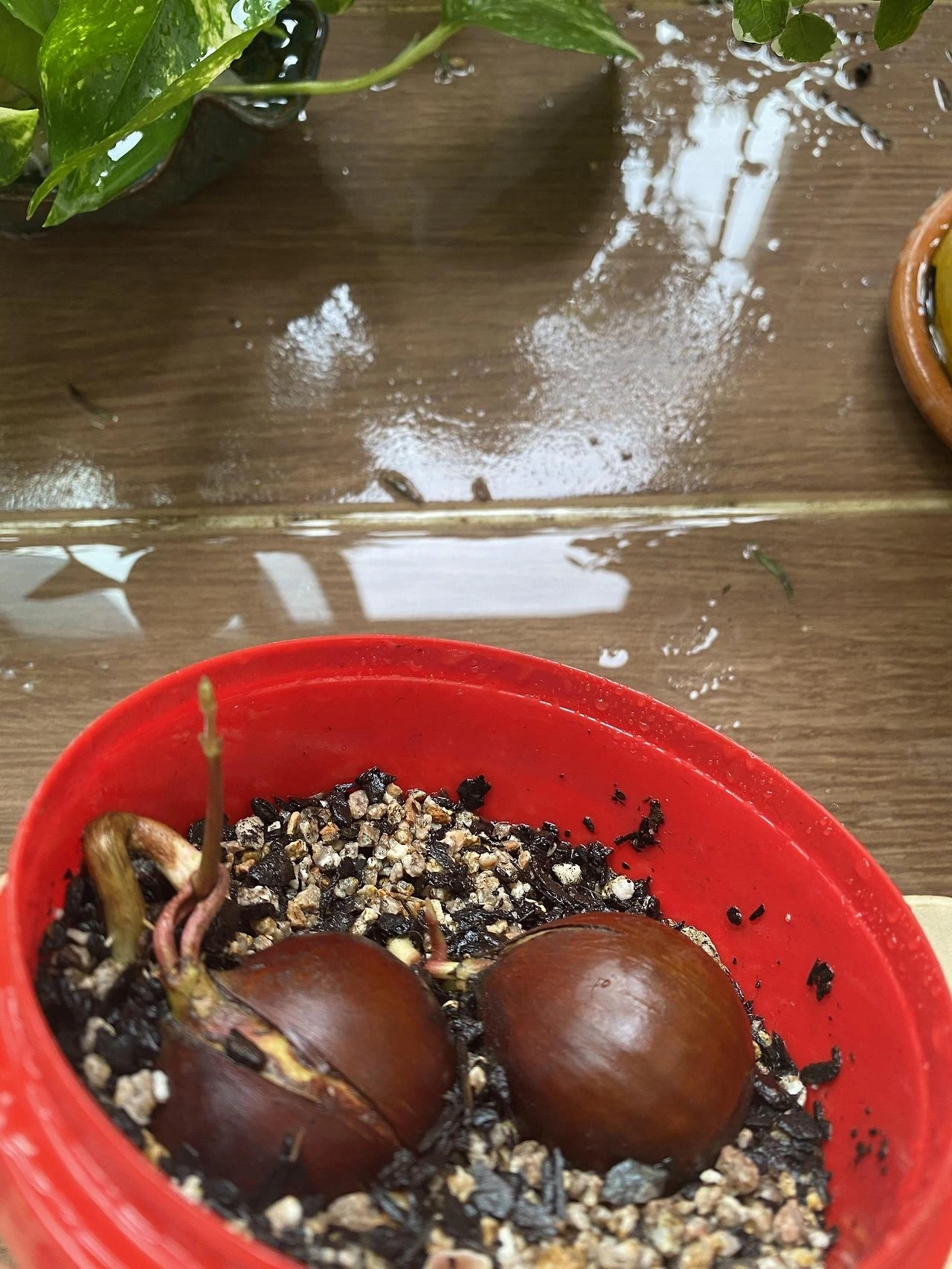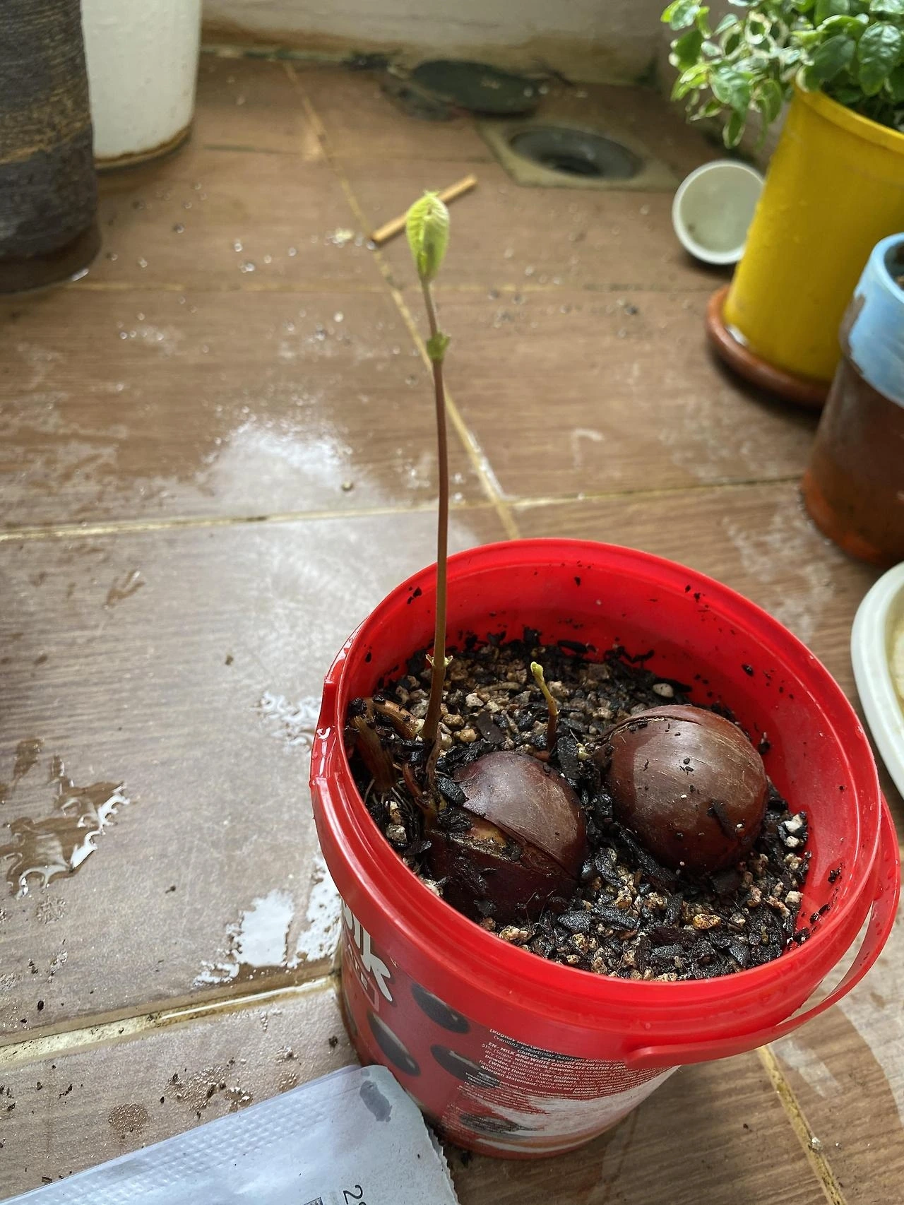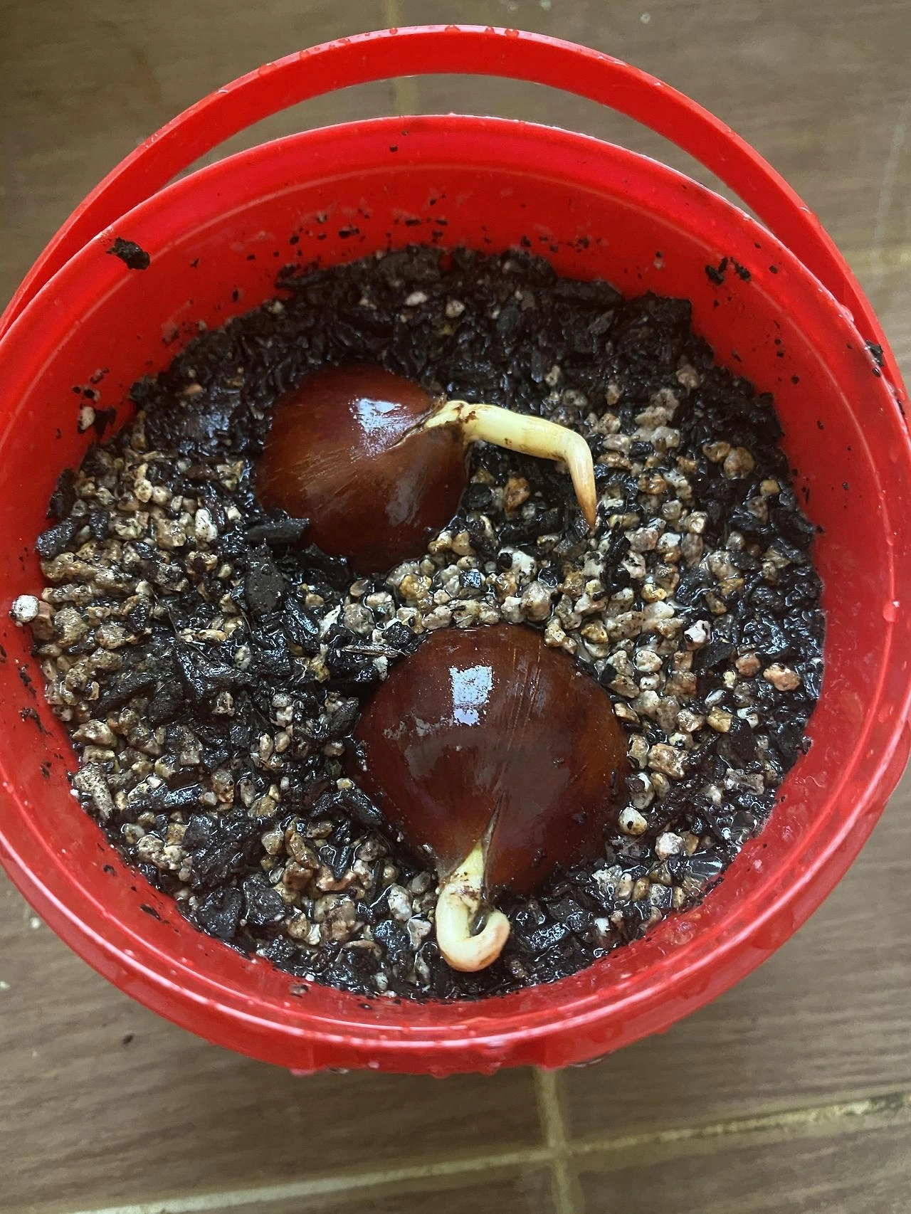 밤의 새싹이 돋아있다