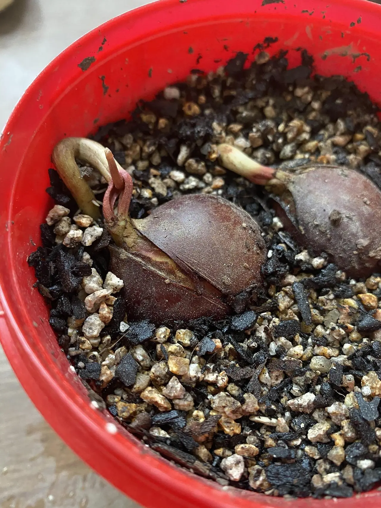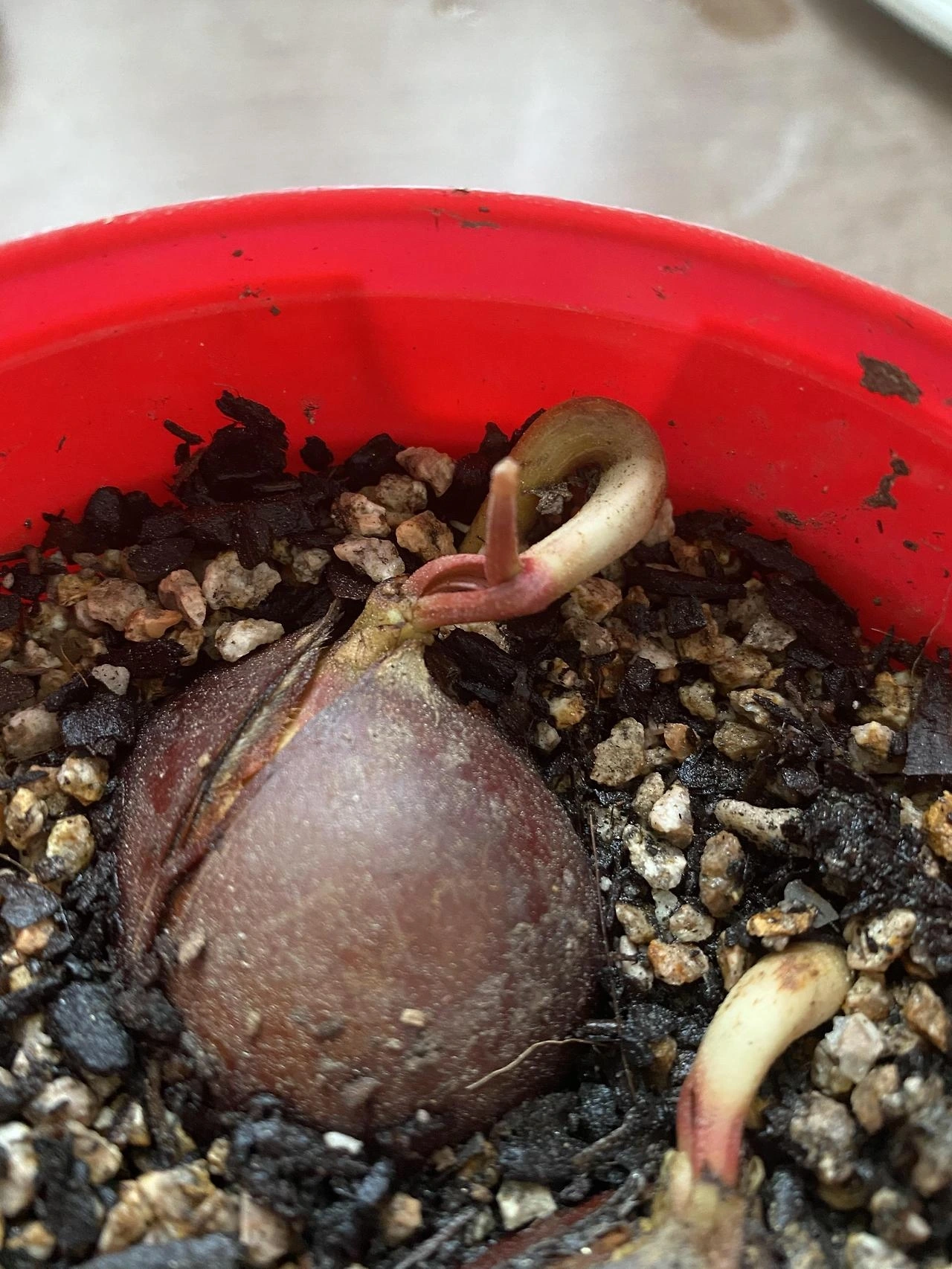 뿌리에서 새싹을 살짝, 내민다