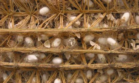 어머니의 따뜻한 숨결소리에 개미누에들이 하나둘 깨어나기 시작했다 개미누에들은 알에서 깨어나기 무섭게 젖을 찾기 시작했다 어머니는 부드러운 뽕잎을 이유식처럼 잘게 썰어서 주었다 누에는 태어나면서 사람처럼 1살을 먼저 먹고 시작했다 누에들의 식욕은 누구도 따라갈 수 없을 정도록 왕성했다