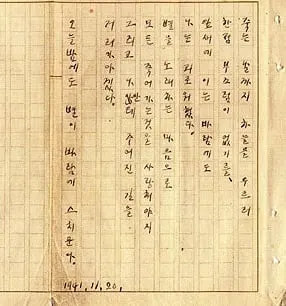 시인 윤동주가 1941년 '서시'를 쓴 육필 원고.