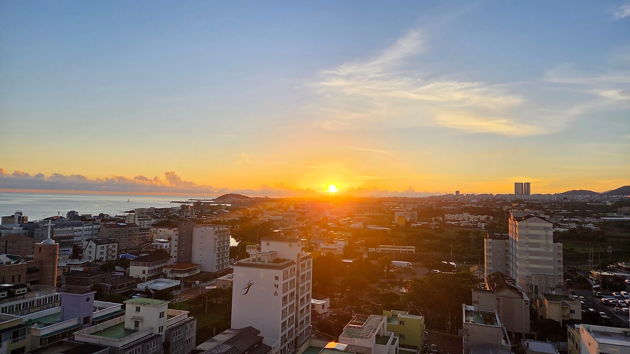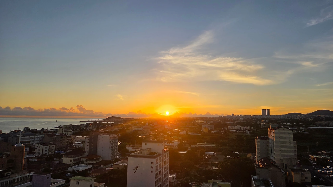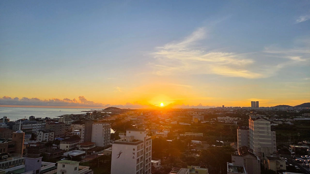 붉은 해는 하얀 소지 한 장을 태워 올린다