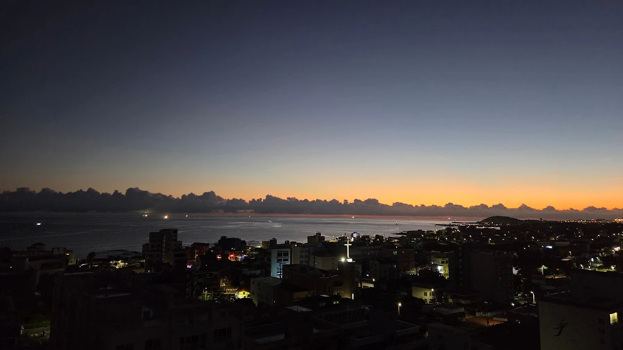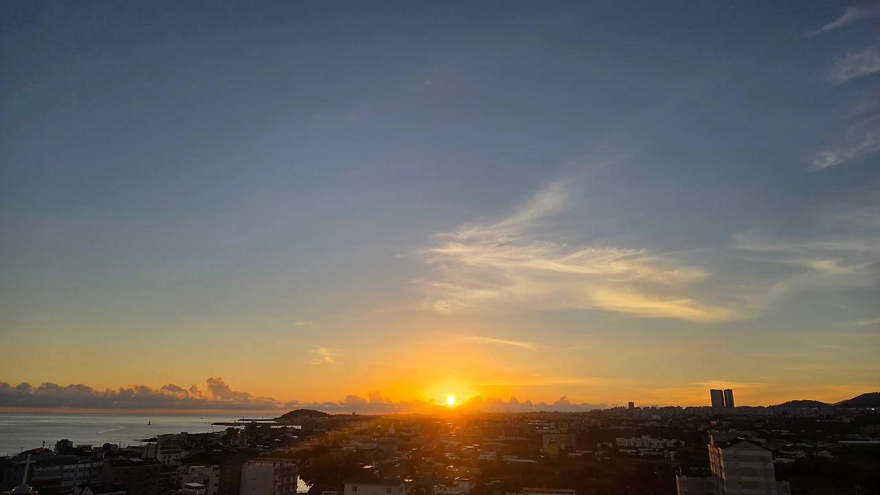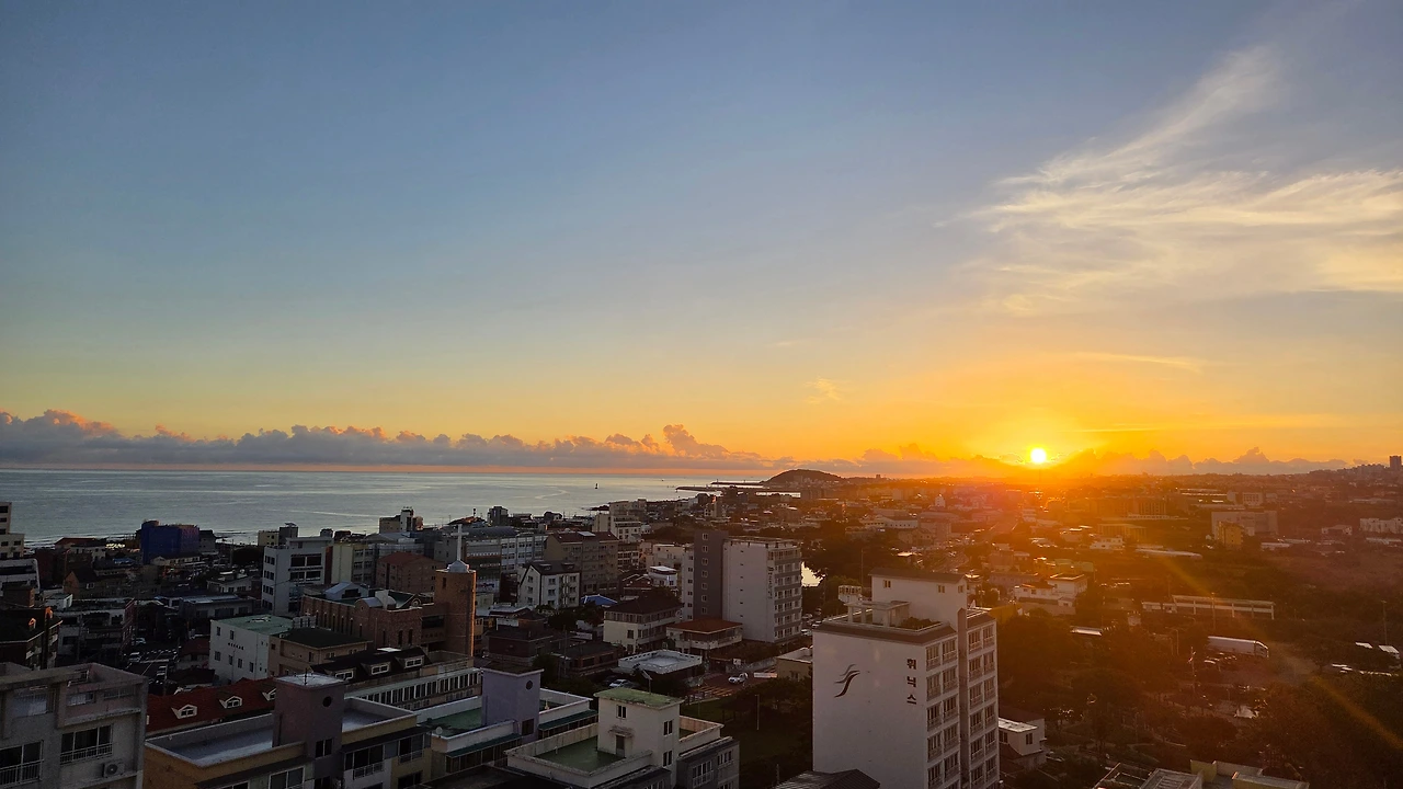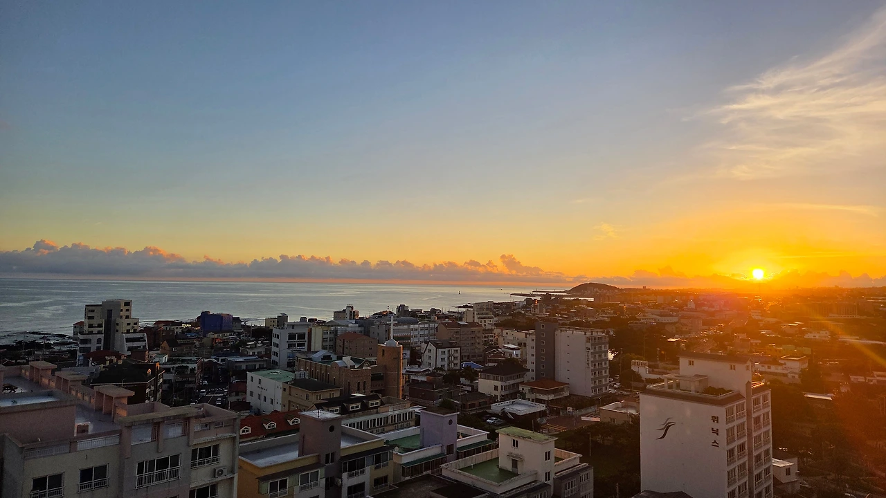 붉은 해는 하얀 소지 한 장을 태워 올린다