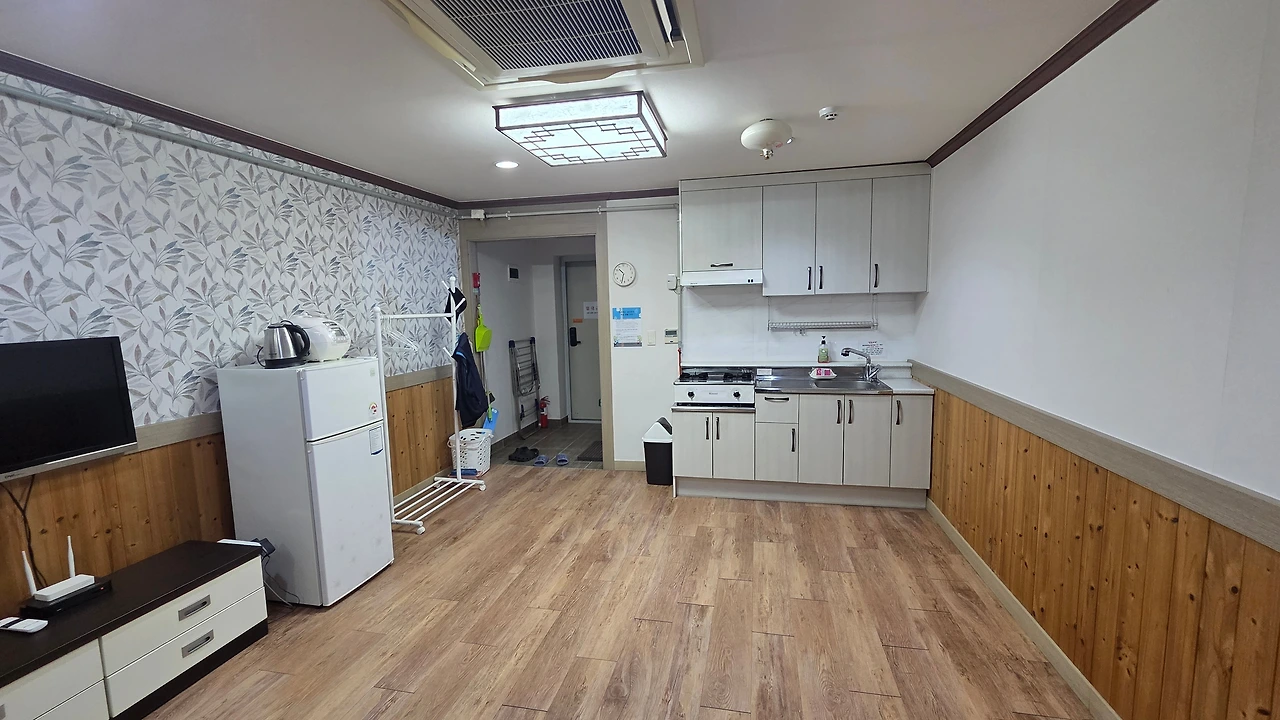 아래층이 베란다처럼 보이는 뒤쪽으로,