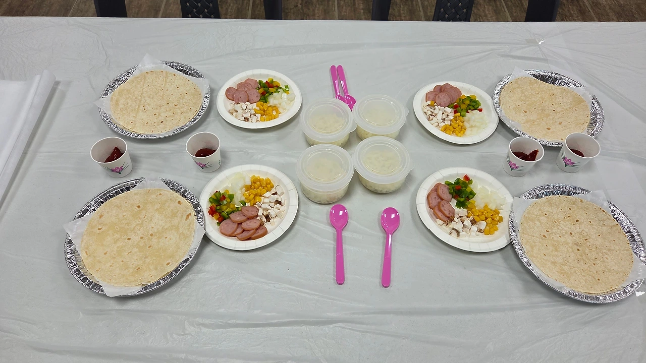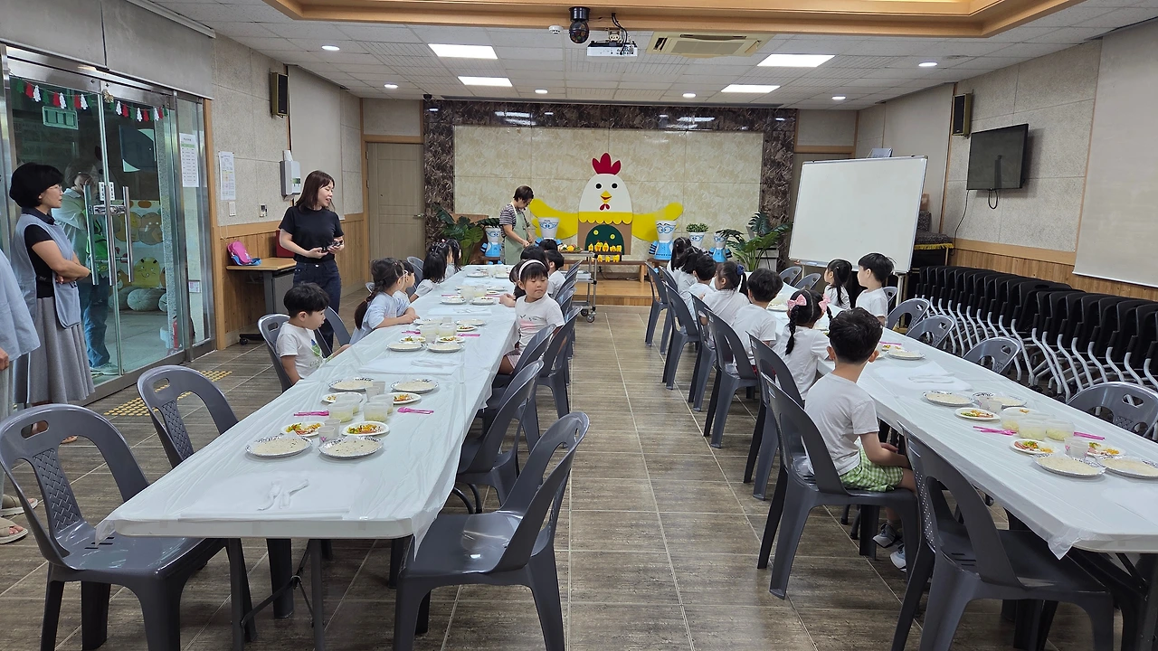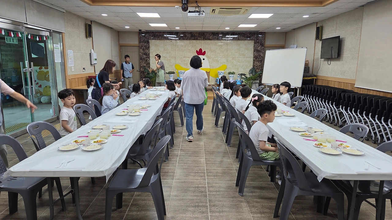 유치원 유아원 아이들과 함께 미니 피자를 만든다