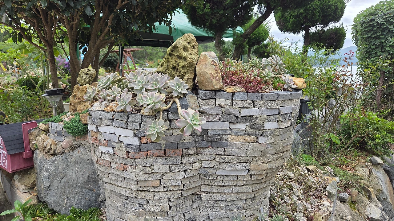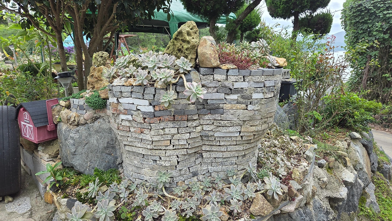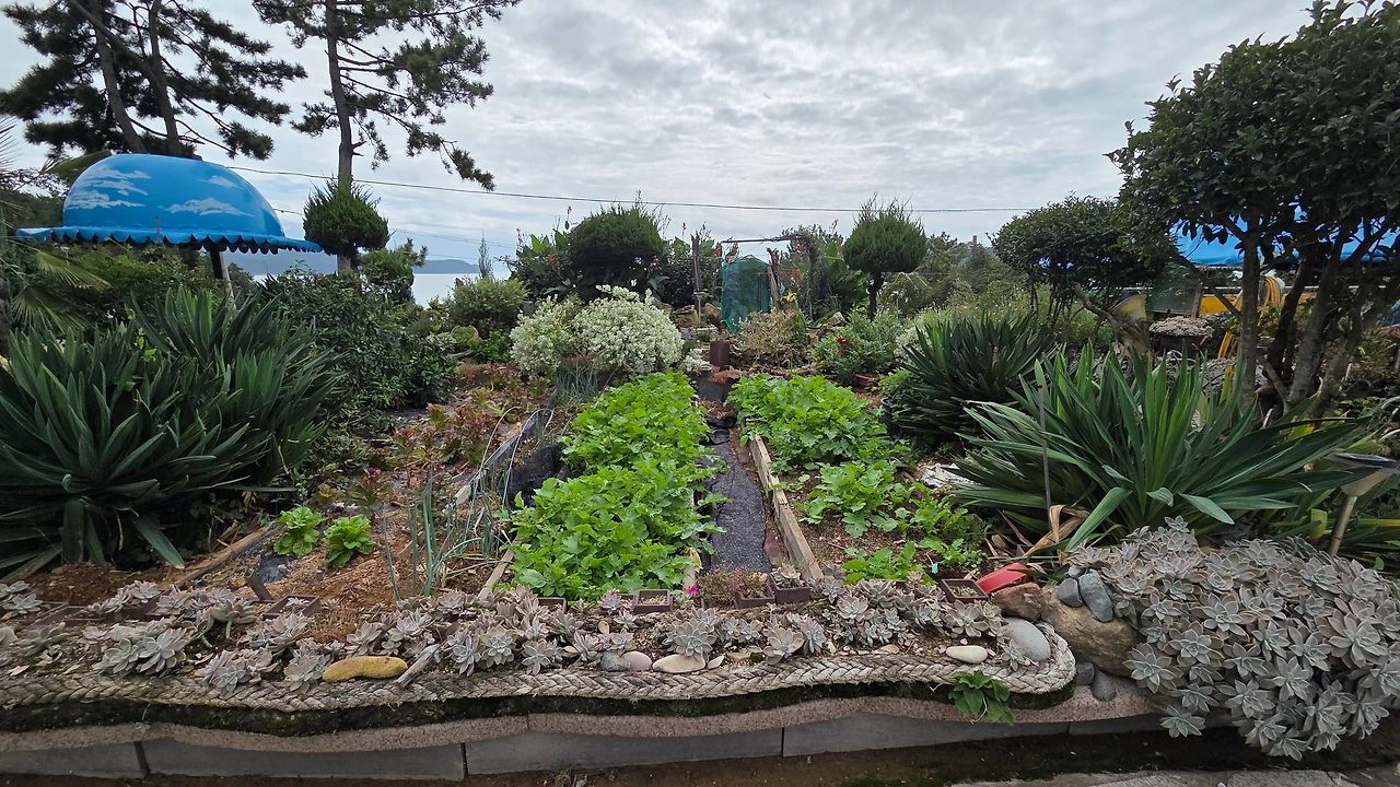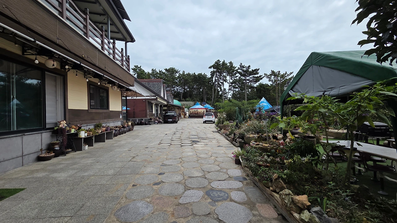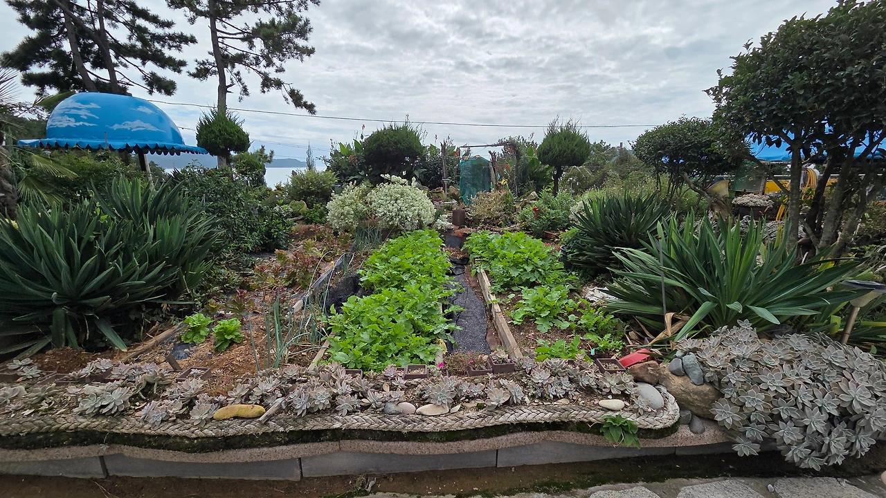 몽돌해변 펜션에서 꽃밭을 구경한다