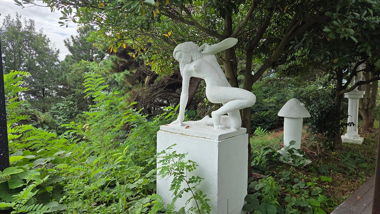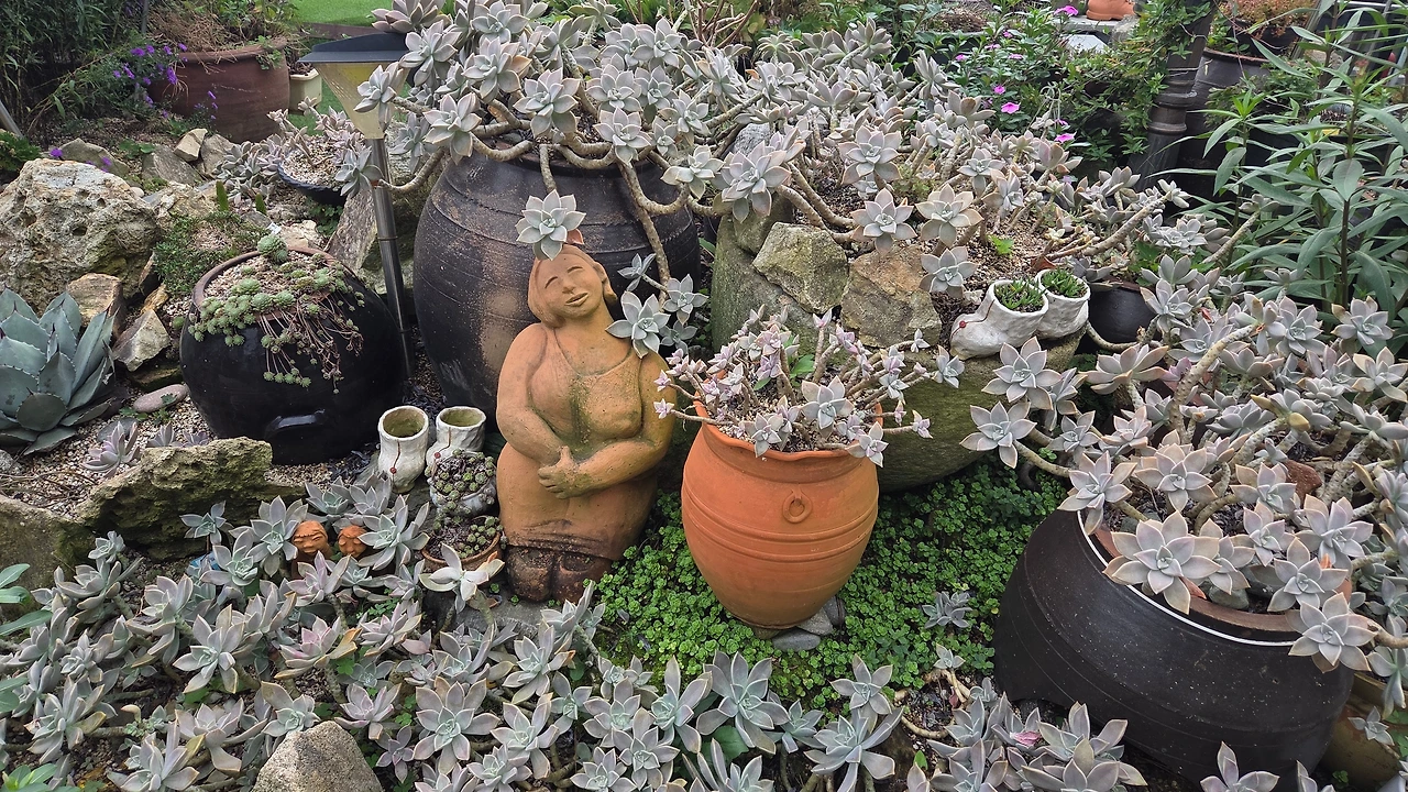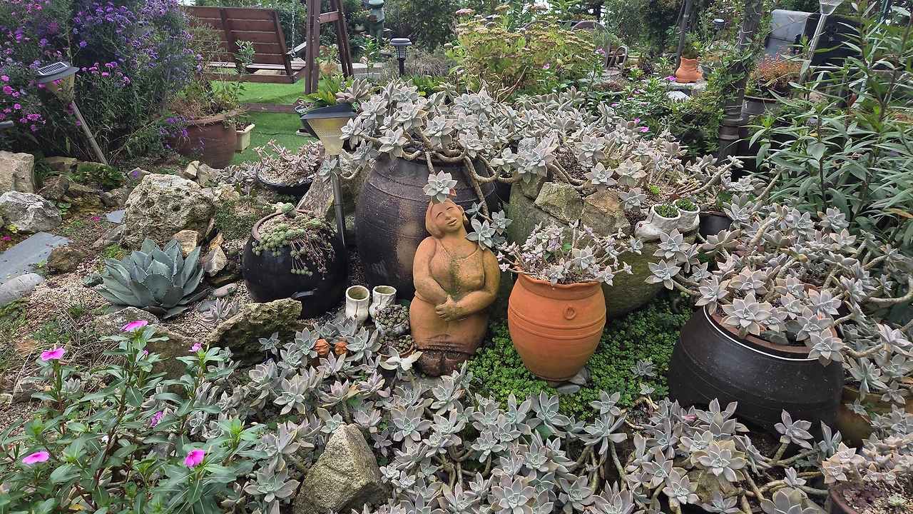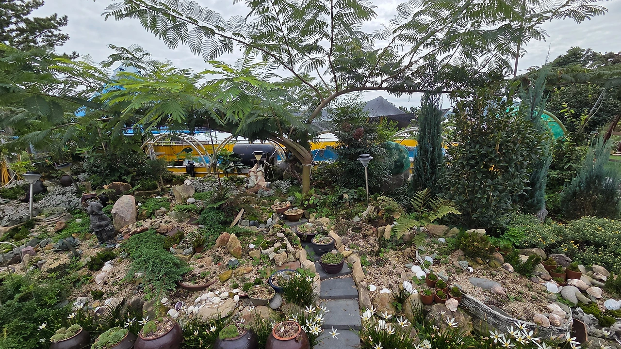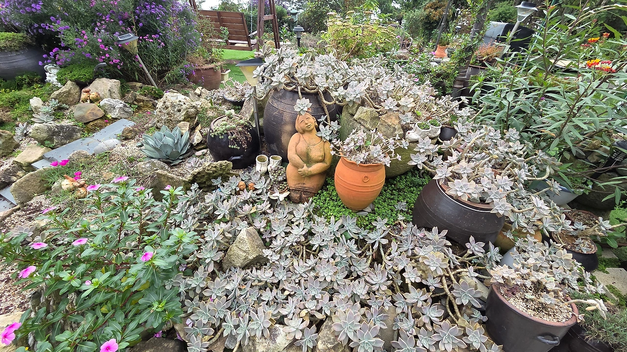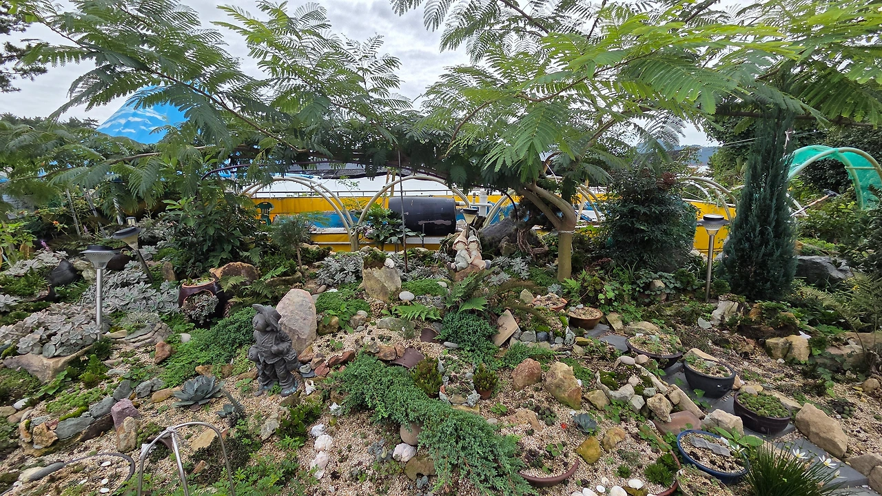 몽돌해변 펜션에서 꽃밭을 구경한다