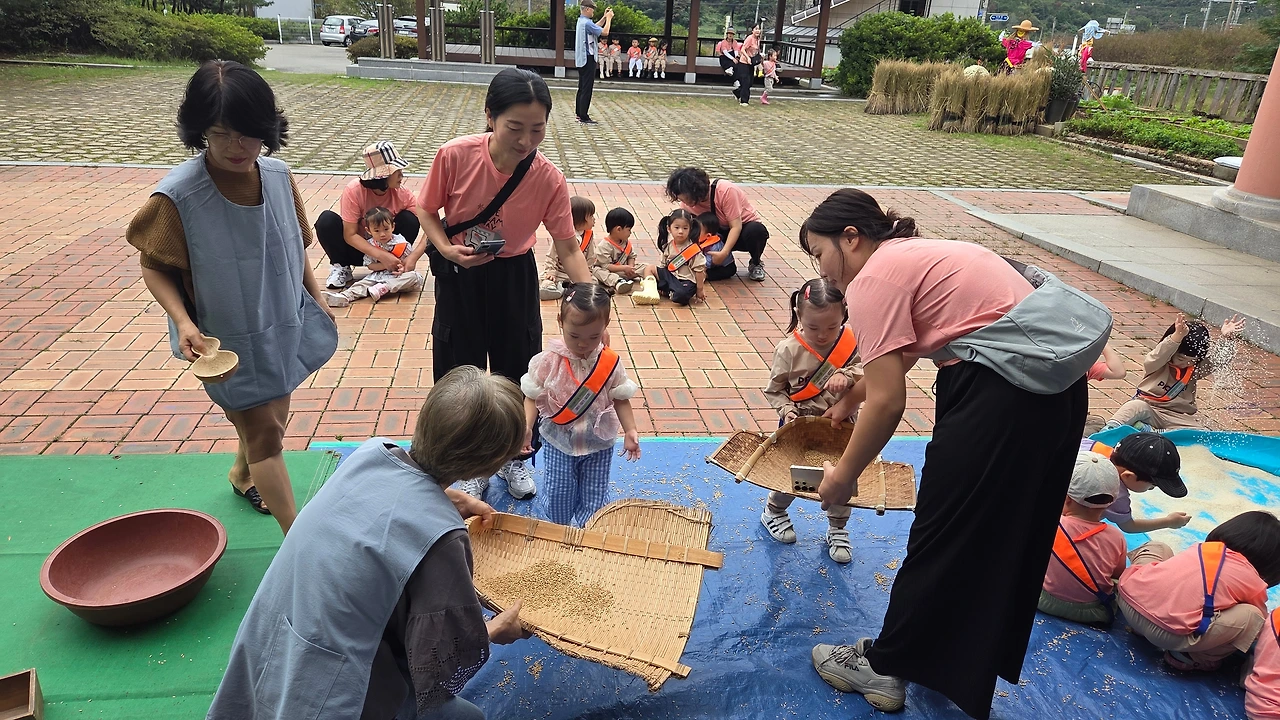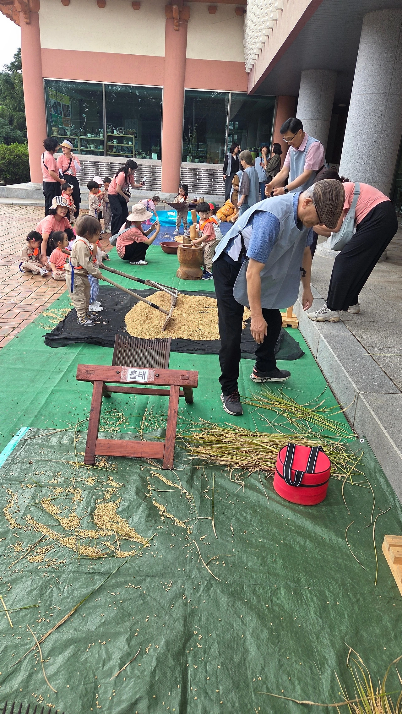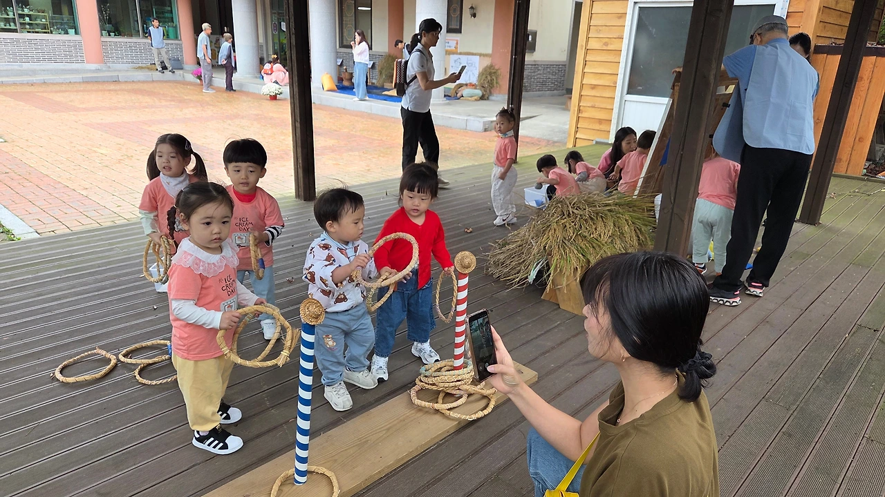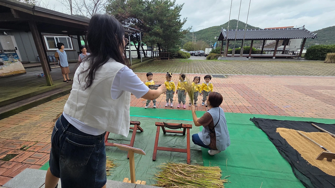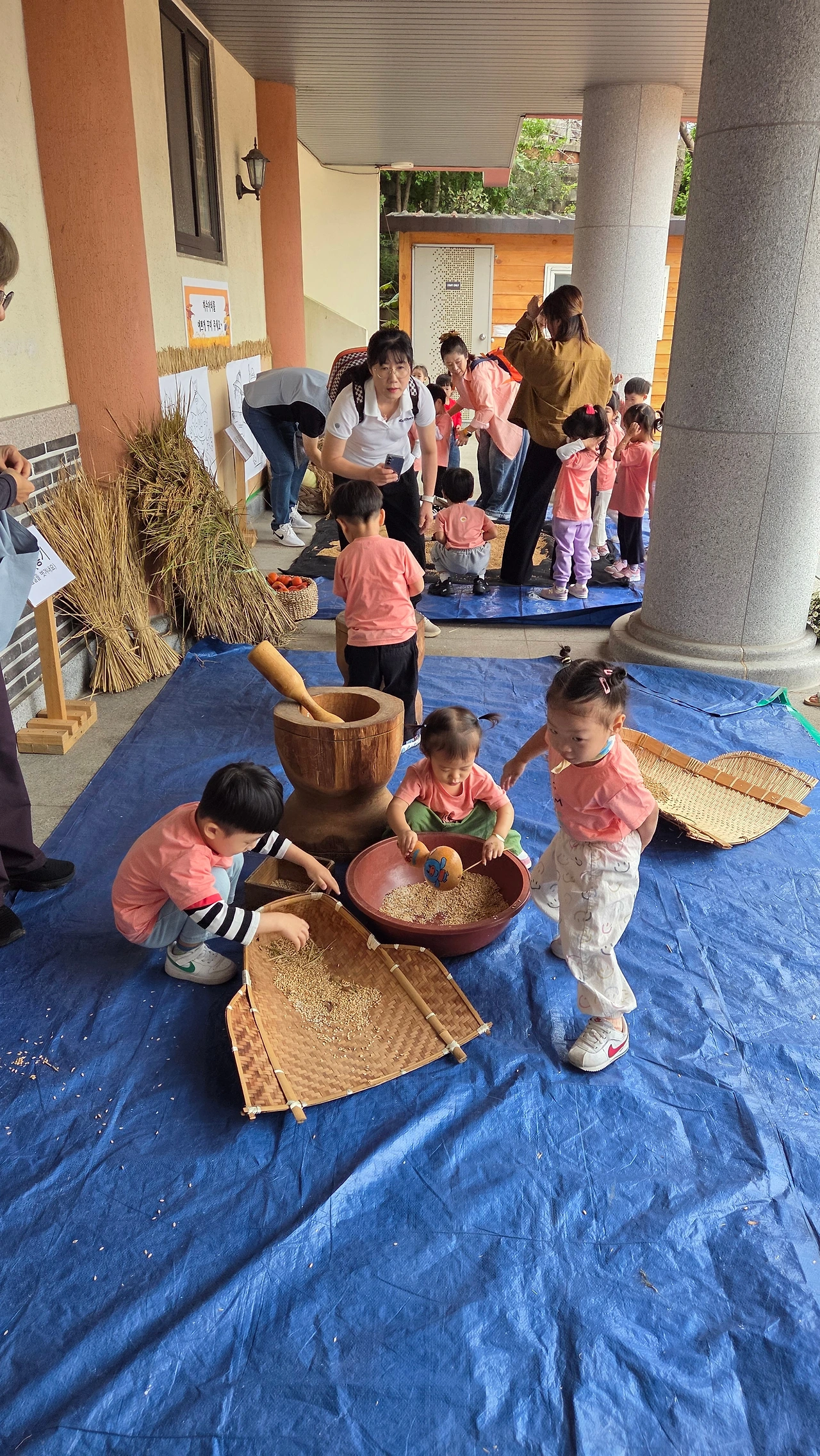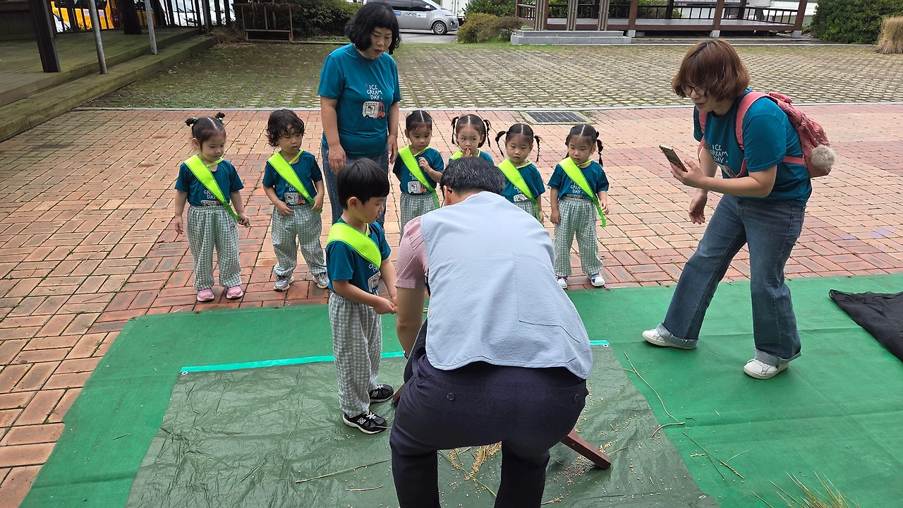 유치원생들과 홀테 체험을 하고 나락 말리기 체험을 하고