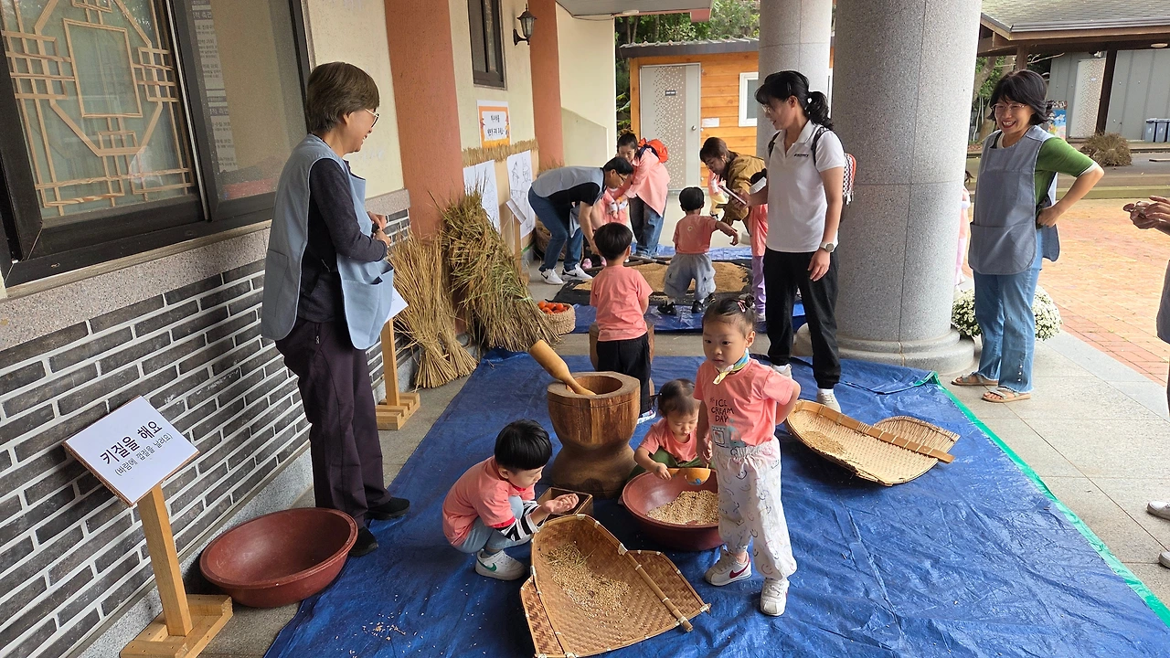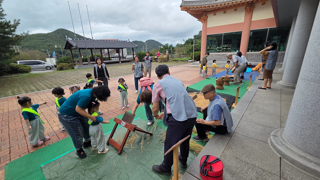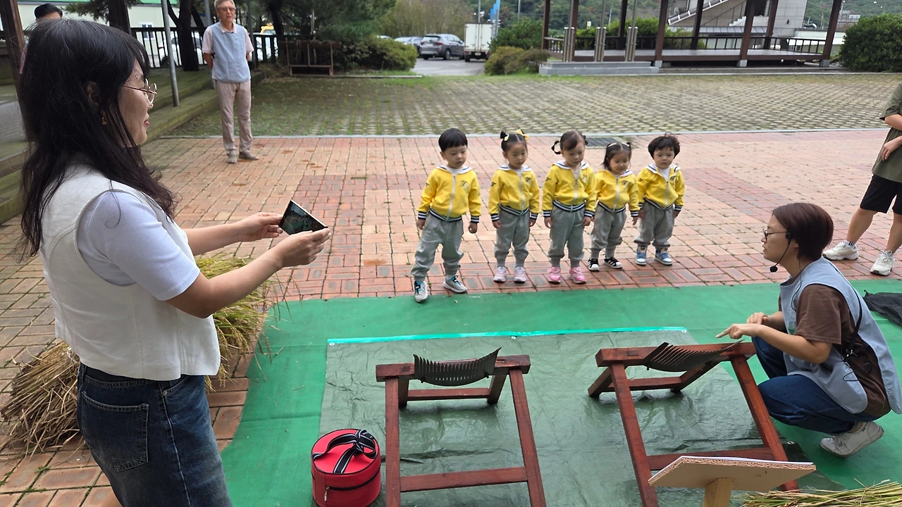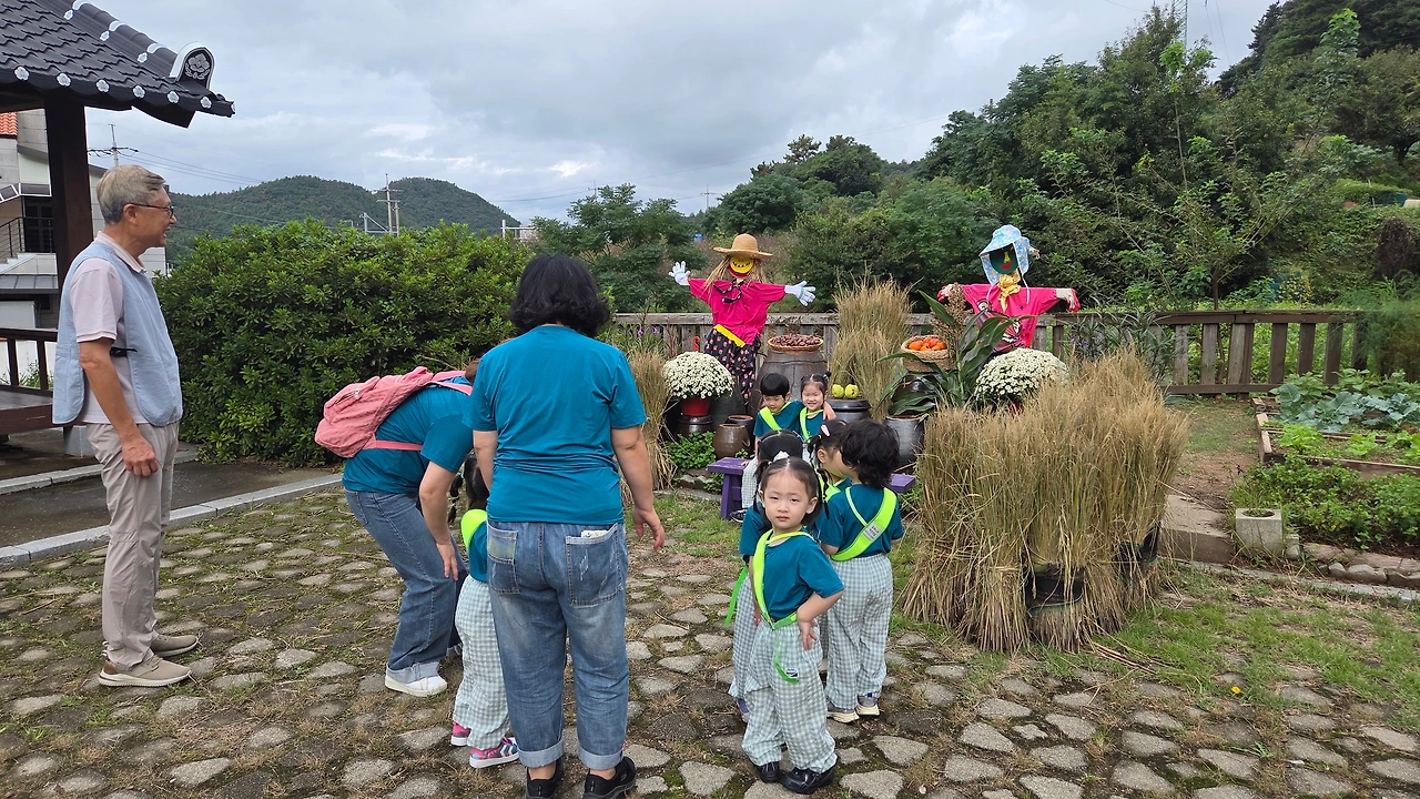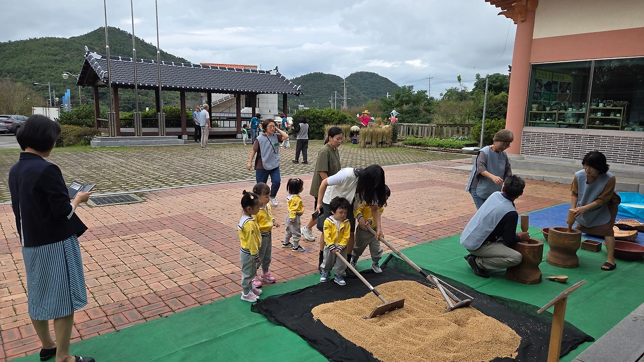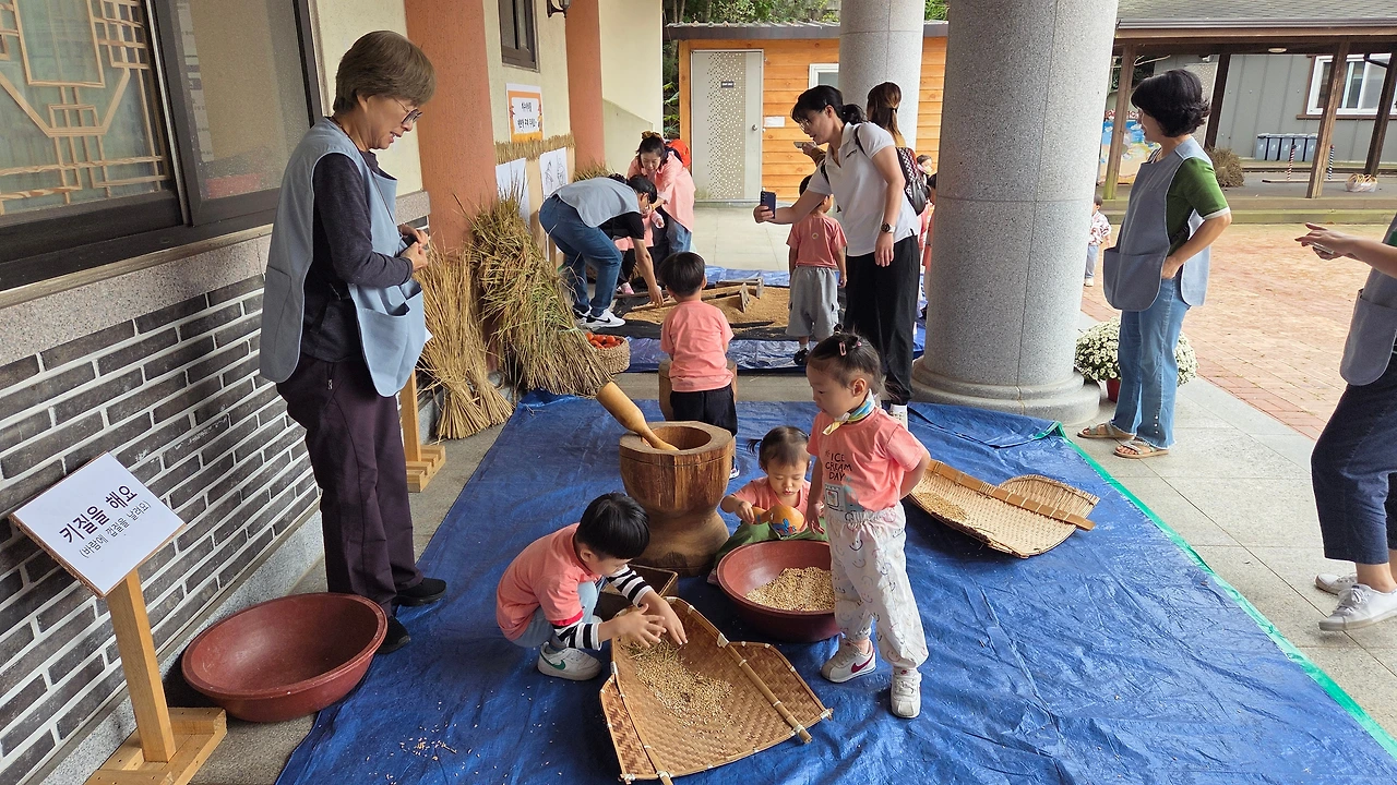 유치원생들과 홀테 체험을 하고 나락 말리기 체험을 하고