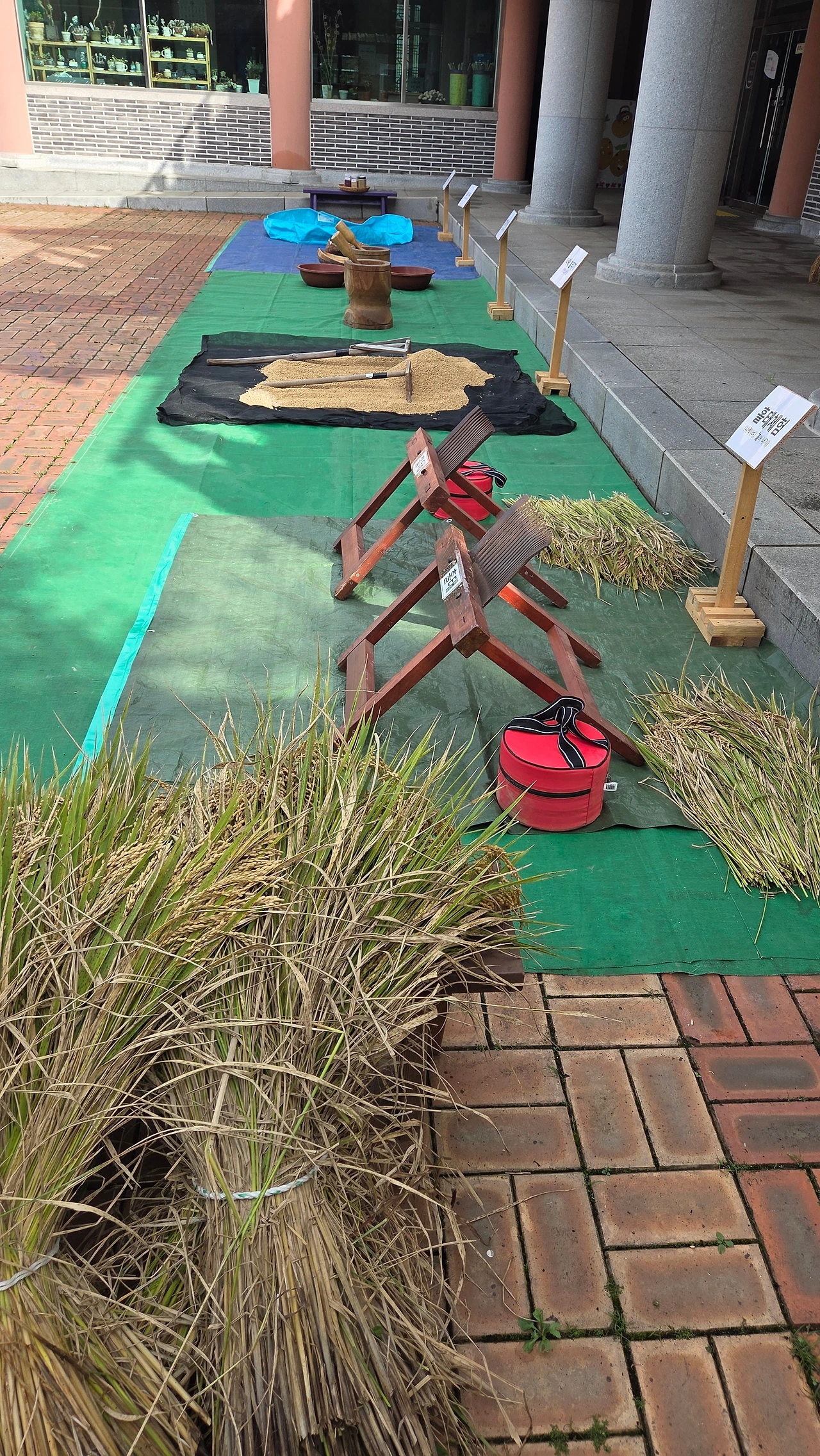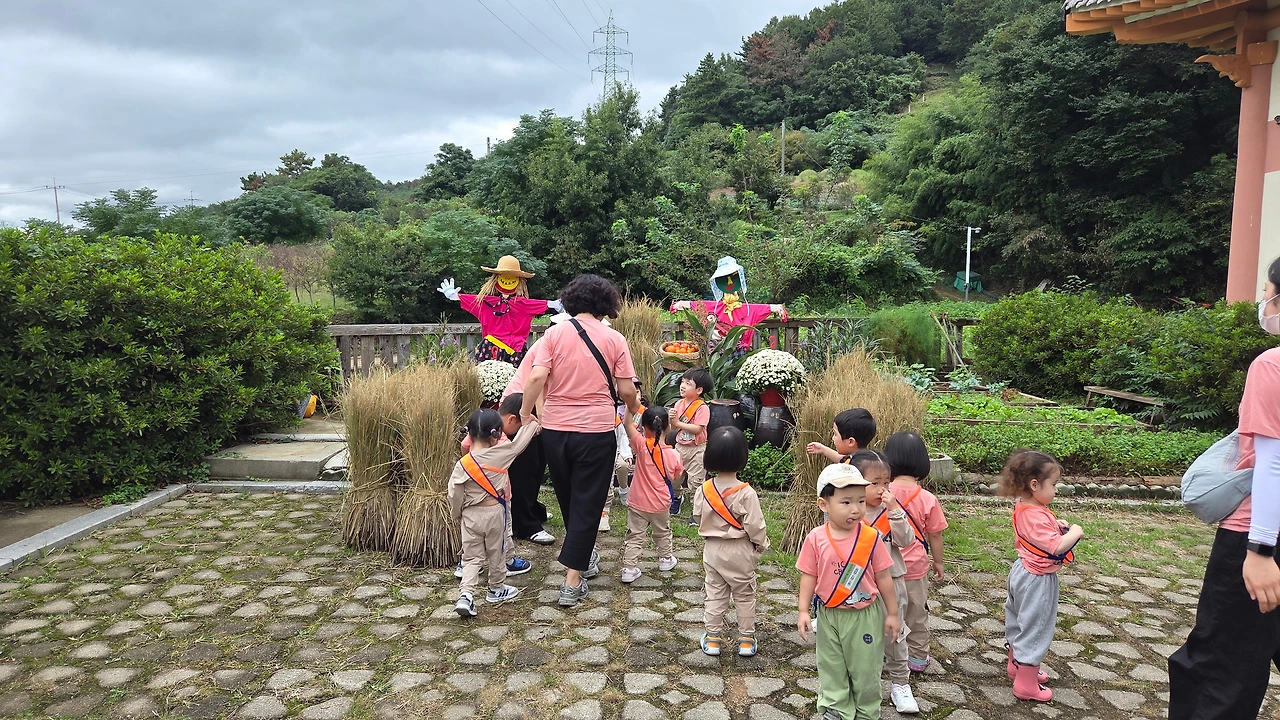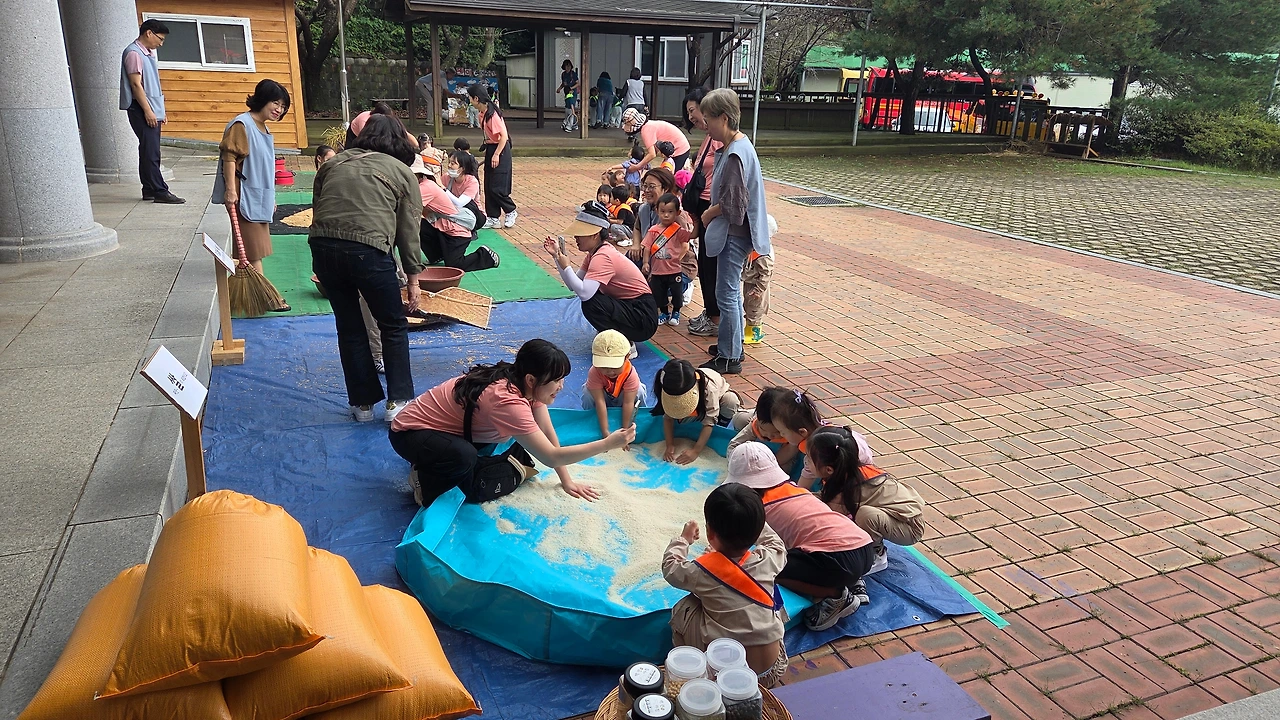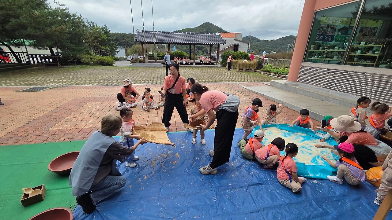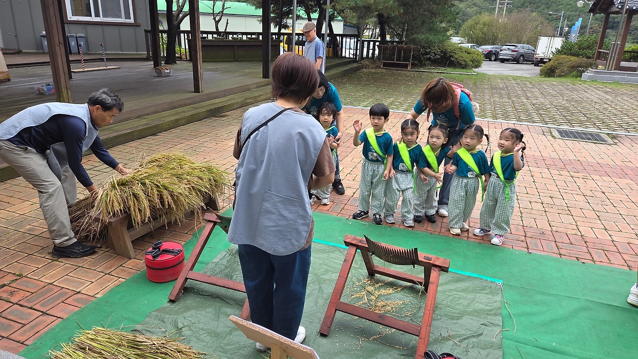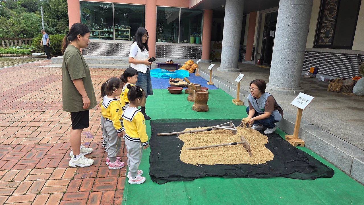 유치원생들과 홀테 체험을 하고 나락 말리기 체험을 하고