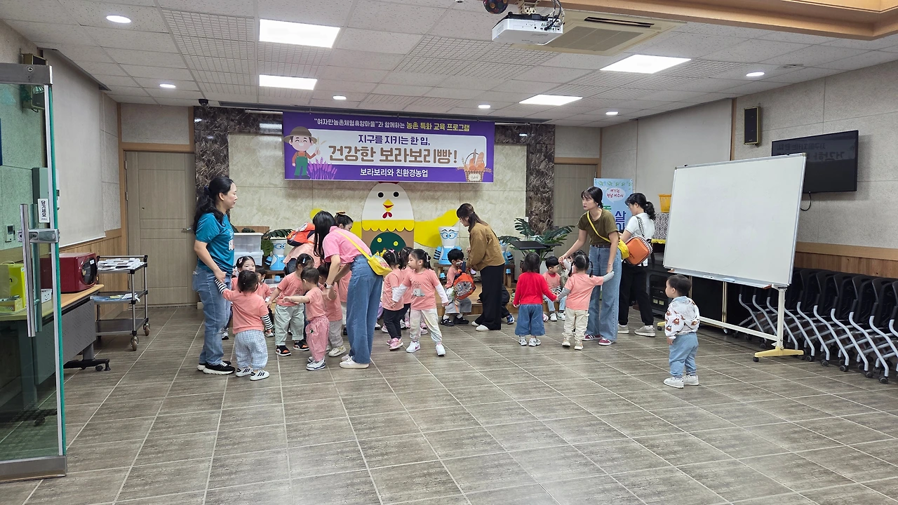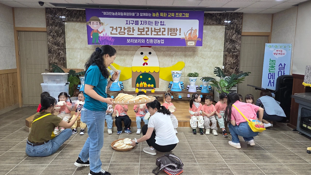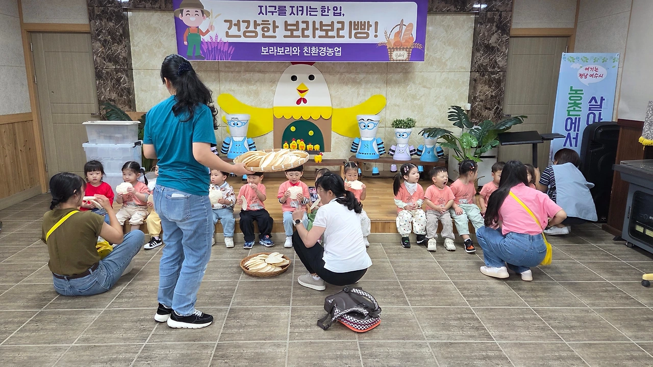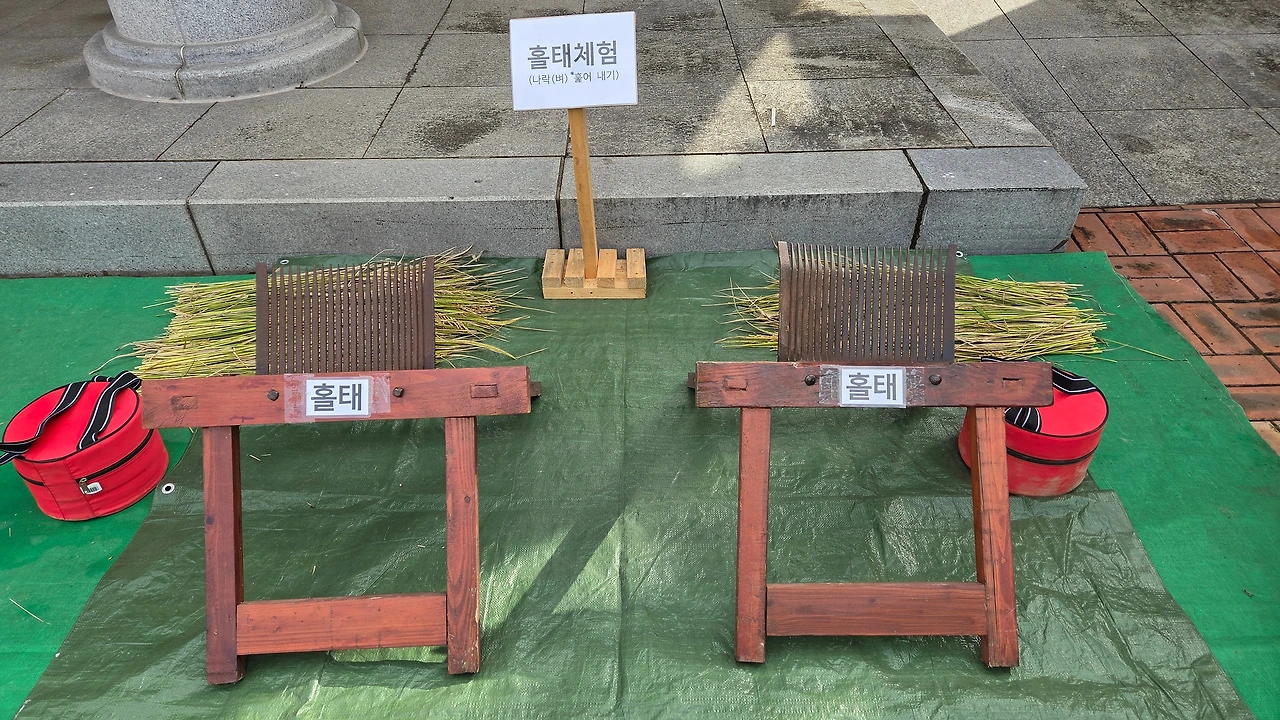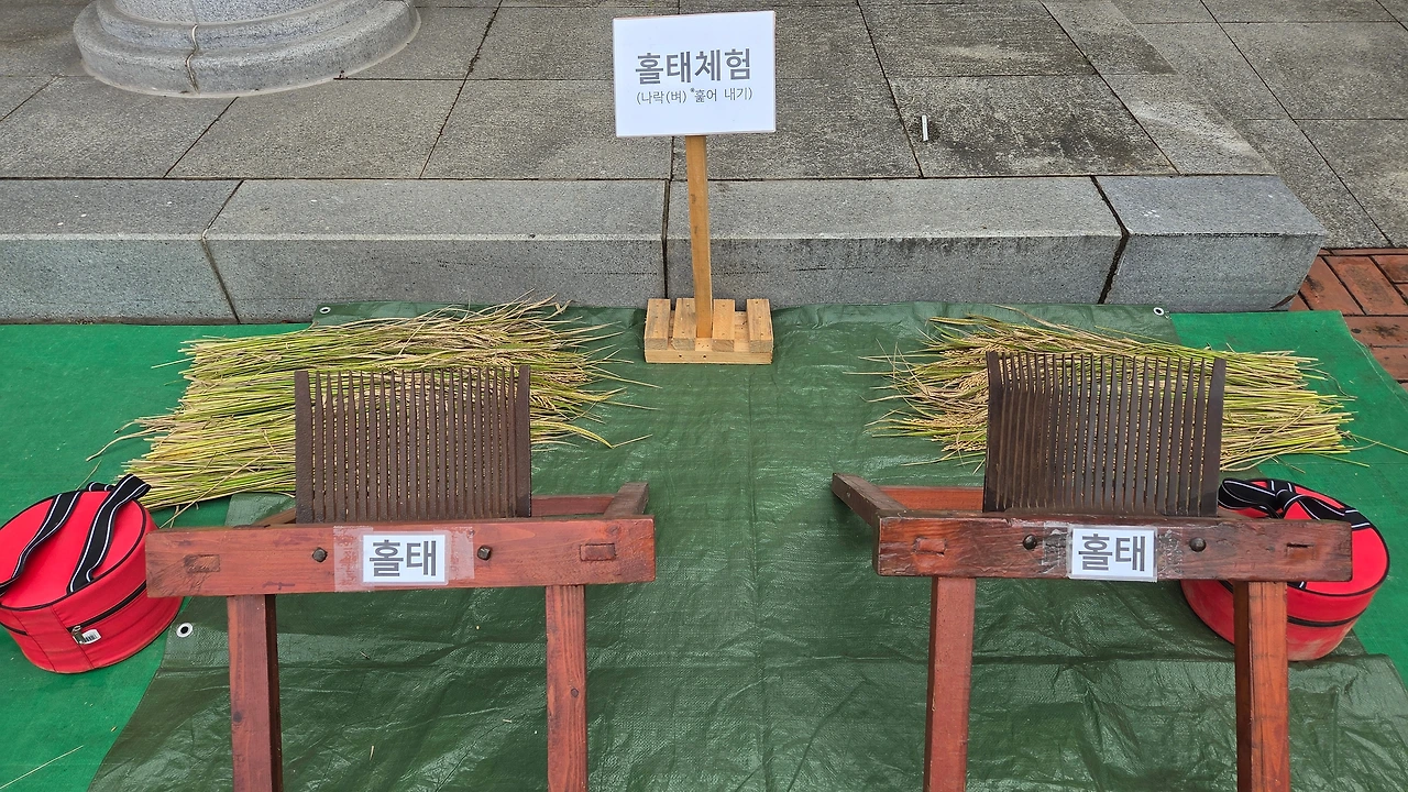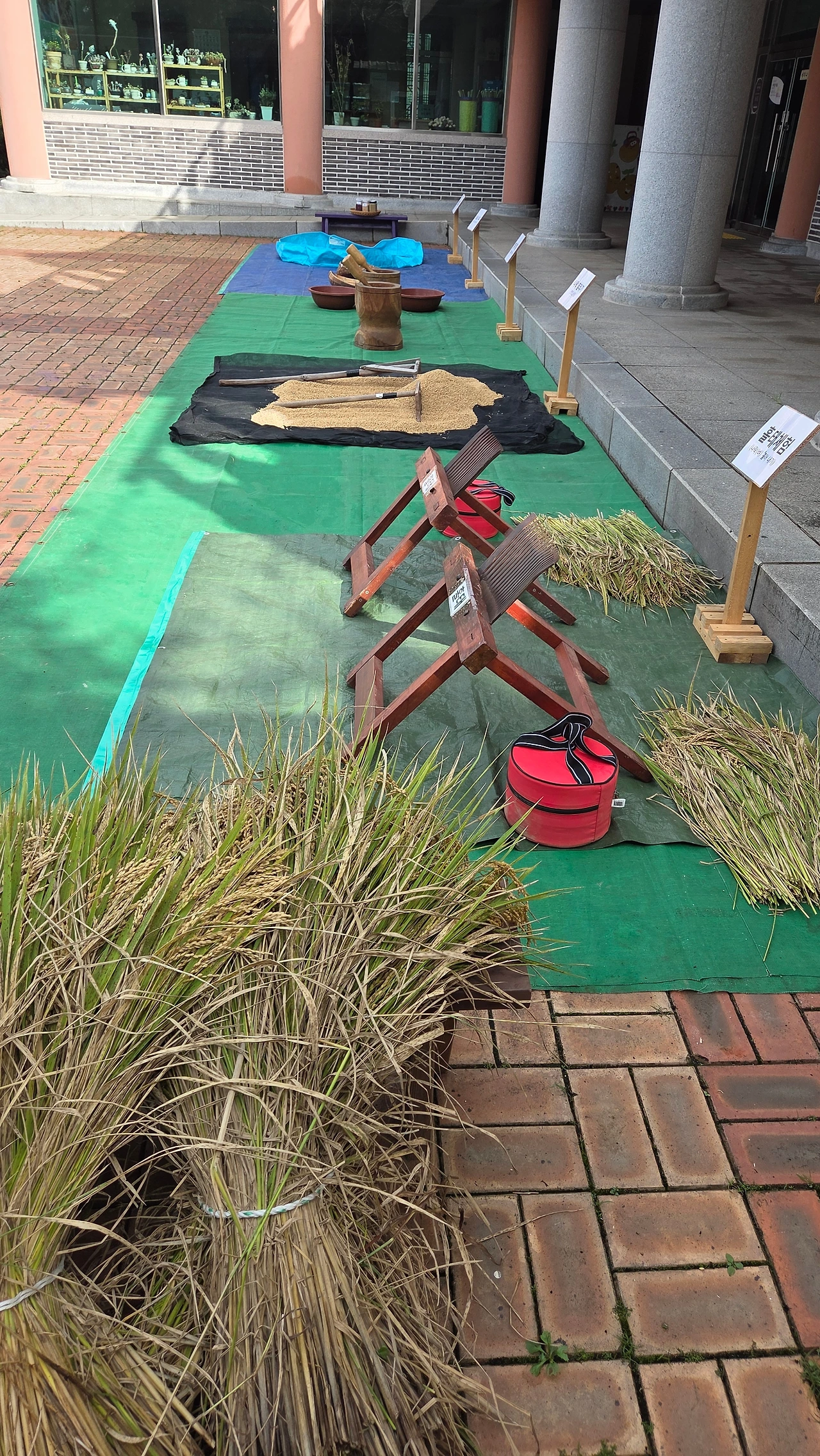 유치원생들과 홀테 체험을 하고 나락 말리기 체험을 하고