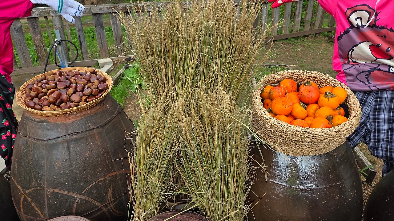 농촌 체험을 온 아비와 어미들이 모여 막걸리 먹는다