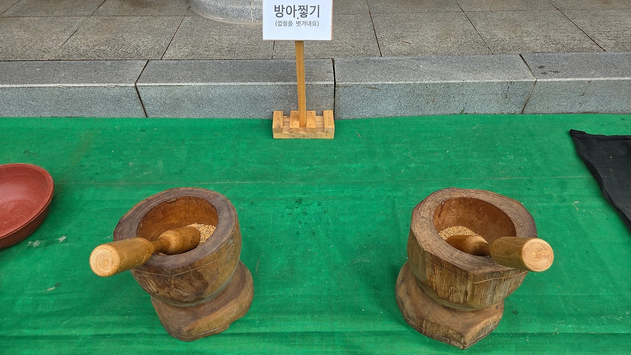 방아 찧기와 키질 체험을 하고 말뚝이 먹이 주기와