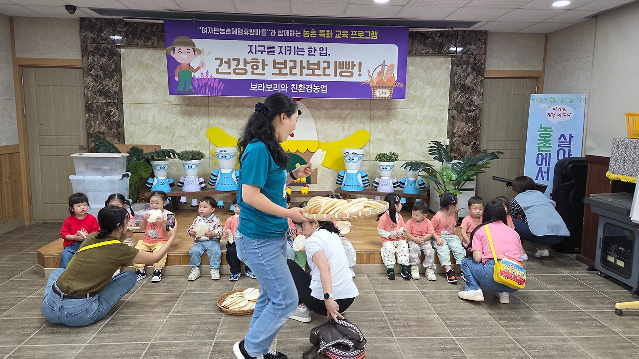 초등학교 아이들과 함께 자주보리로 빵을 만들고