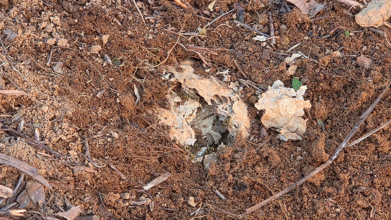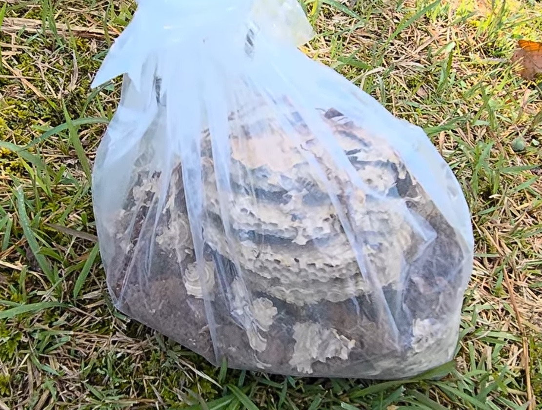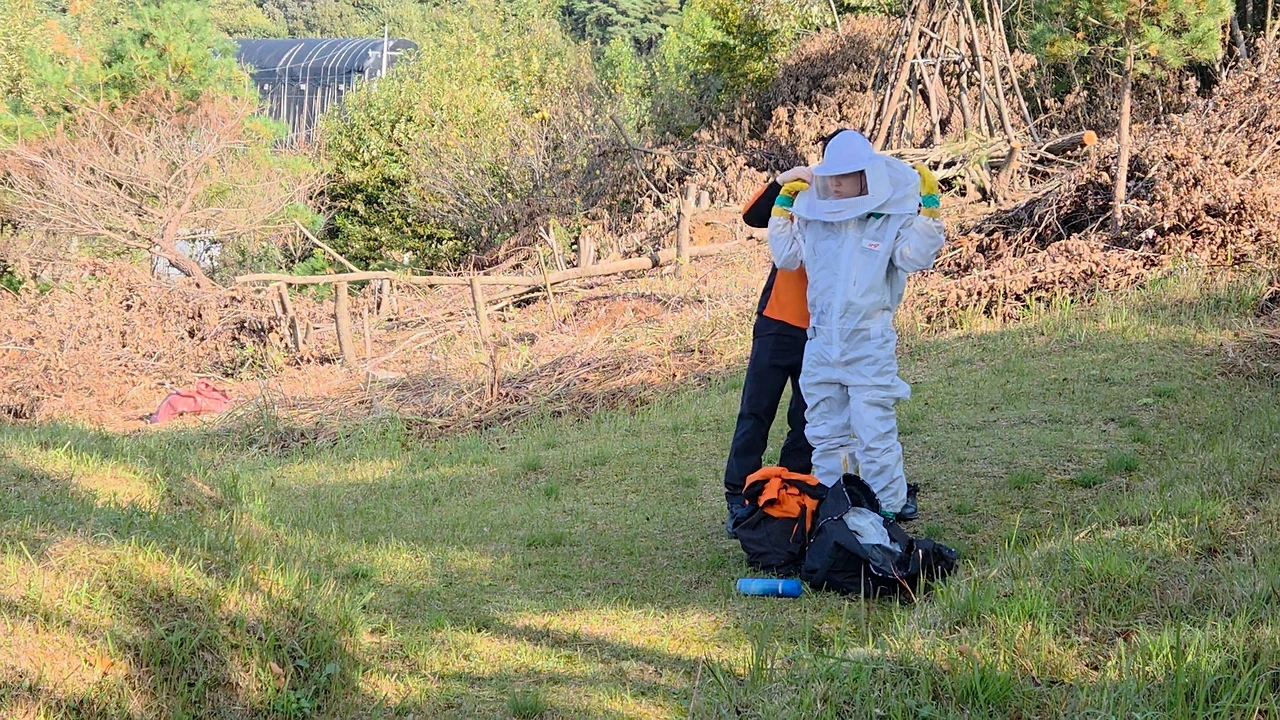 겨울잠을 준비하던 벌들이 집과 함께 쫓겨났다