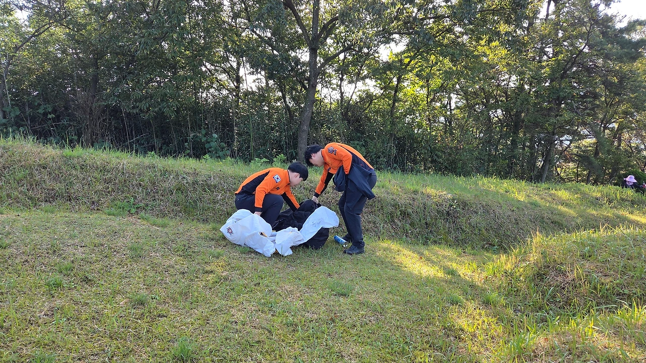 할머니와 할아버지 수목장터를 정리한다