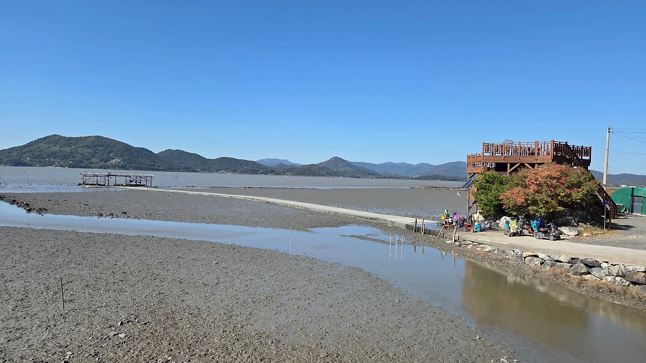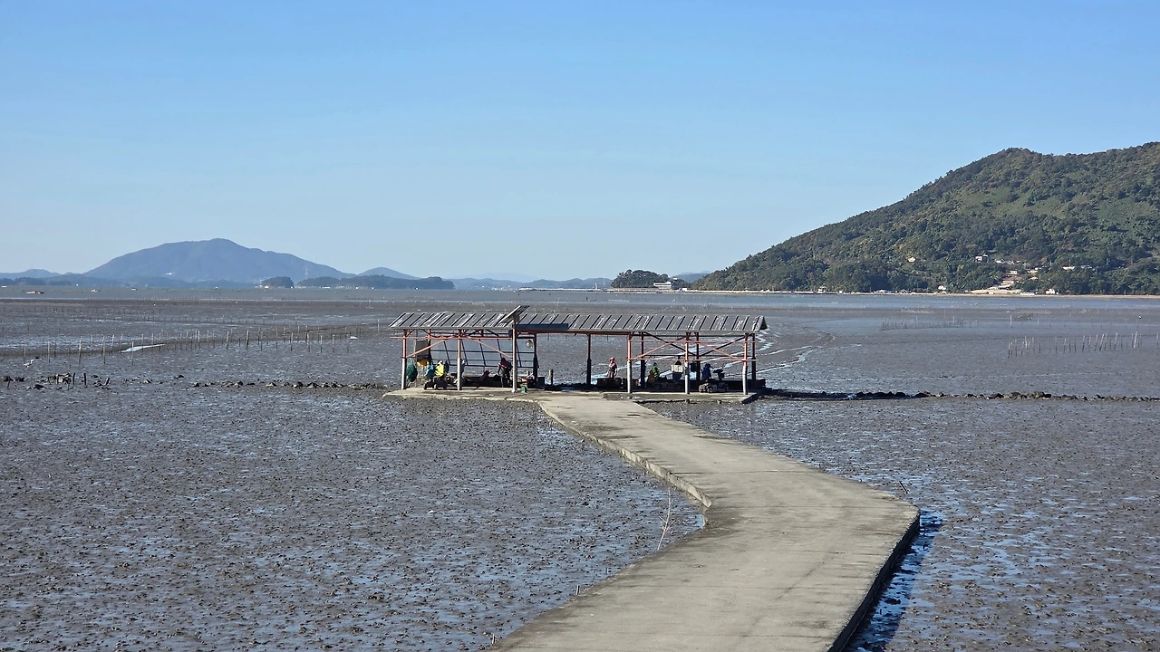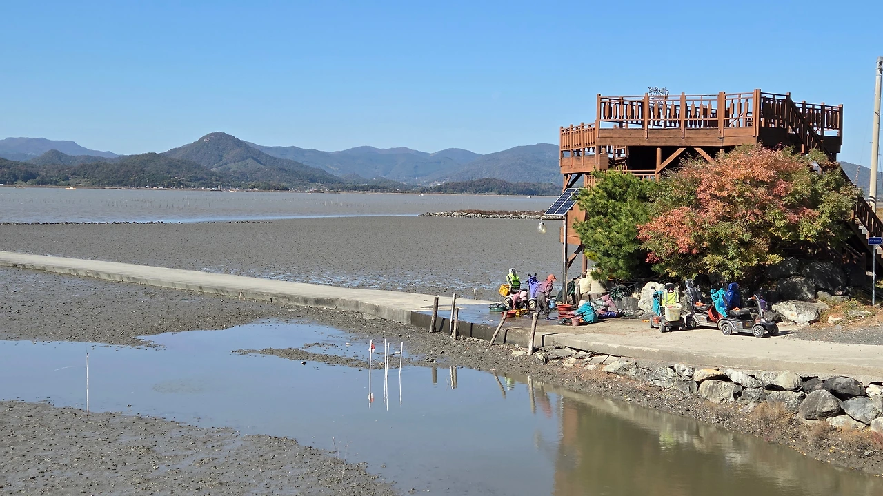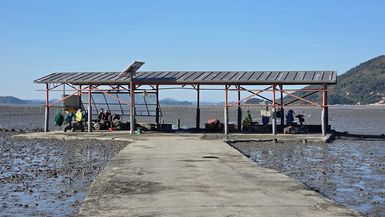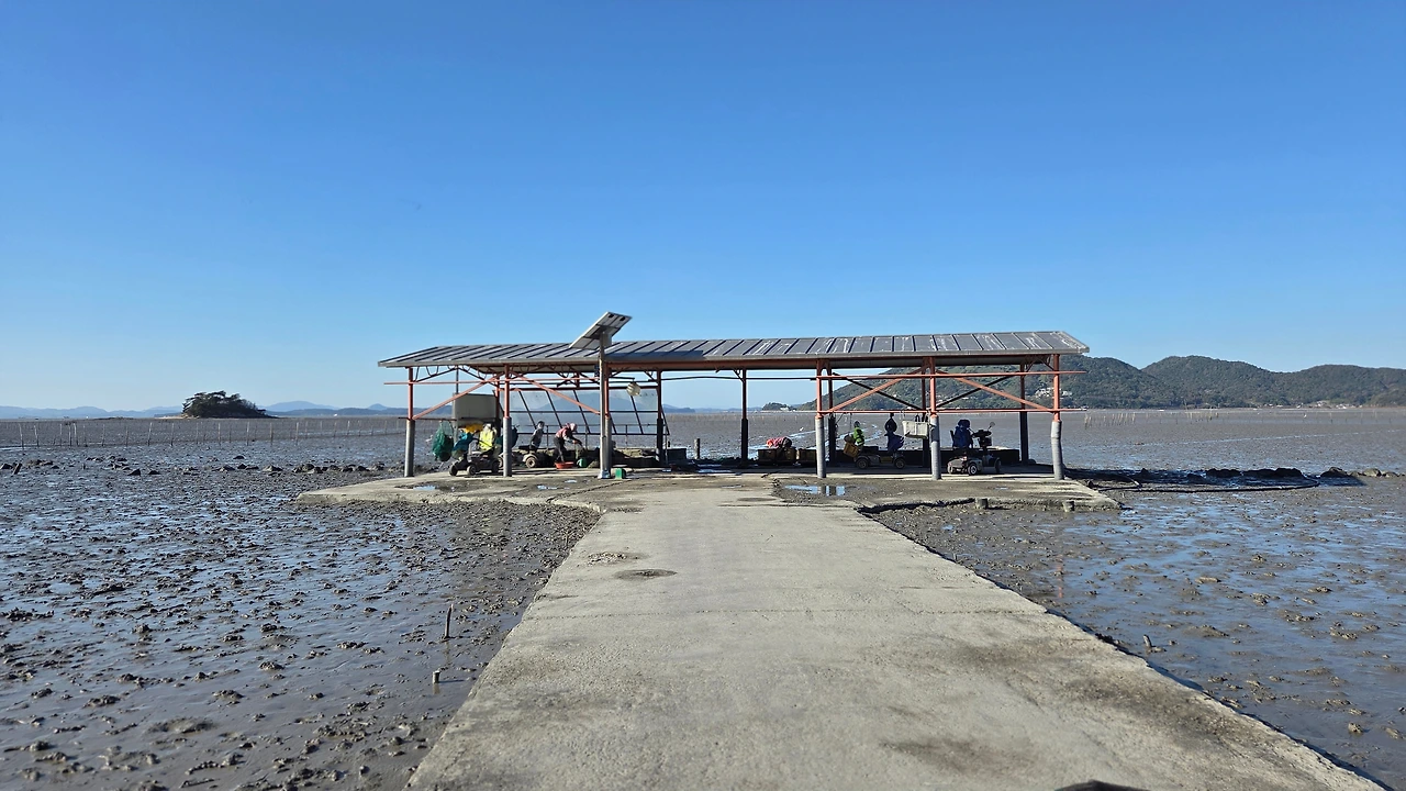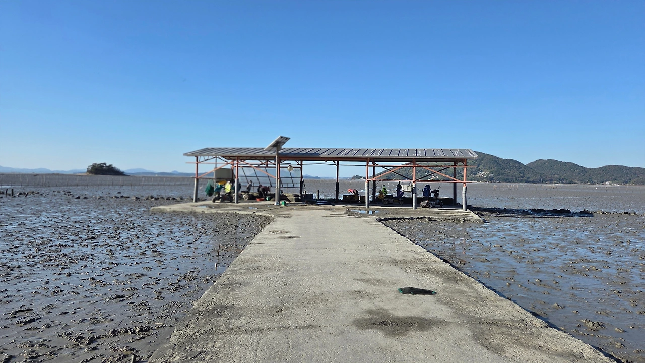 갯벌 중간에 있는 작업장에서 작업을 하다가