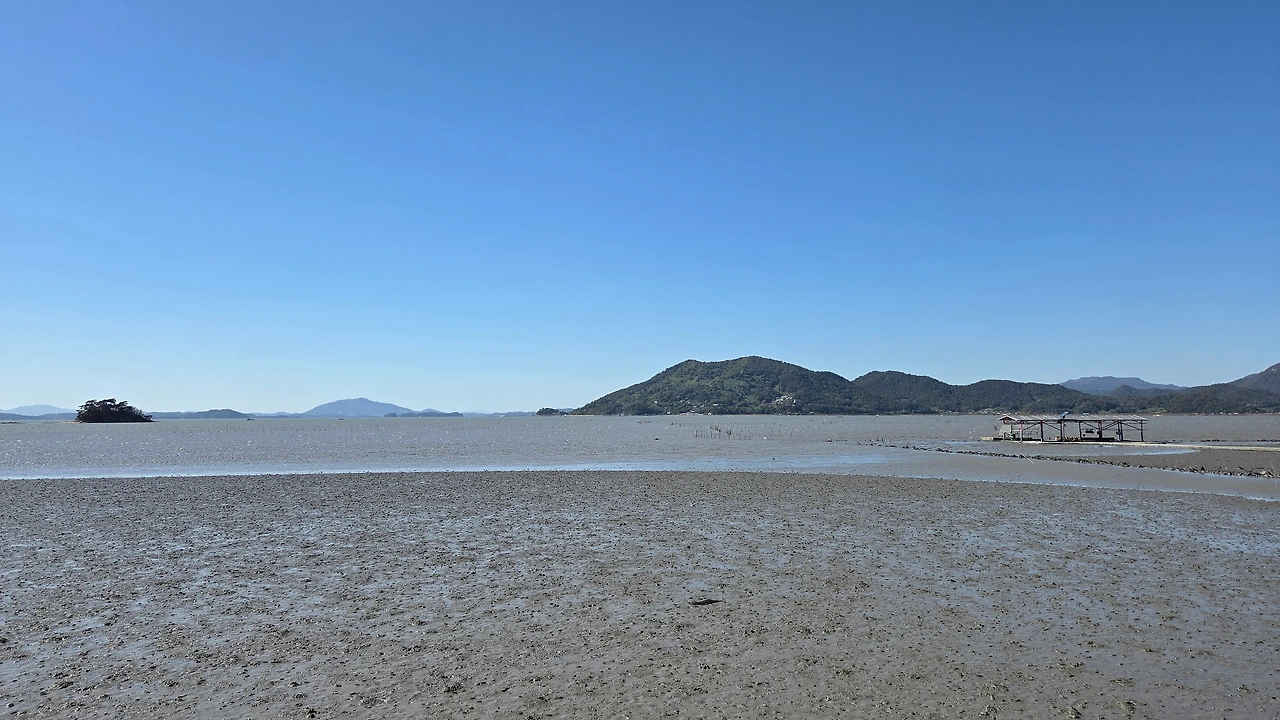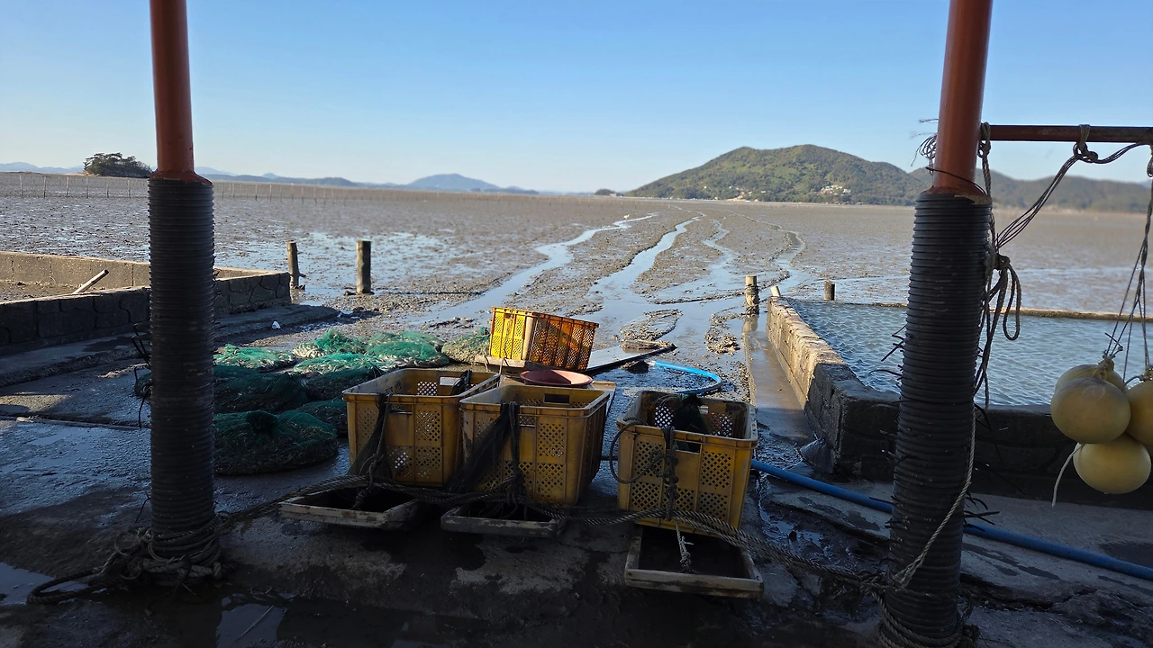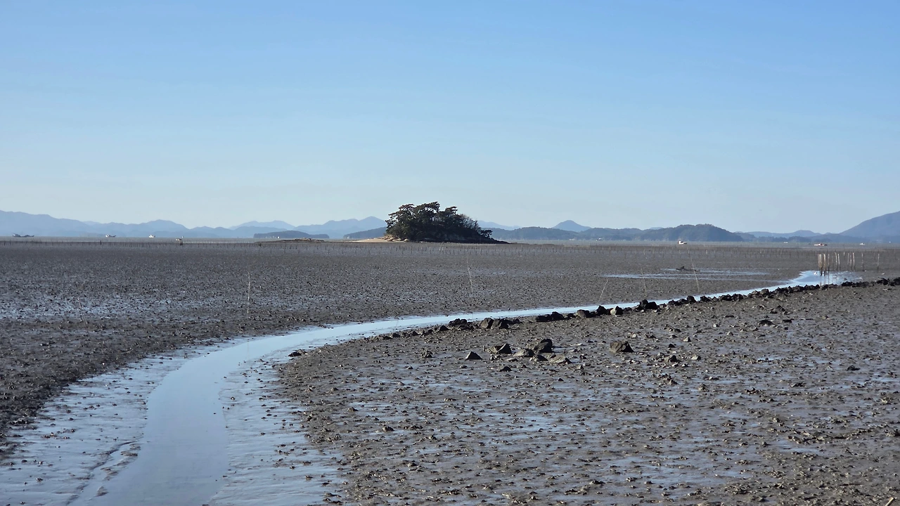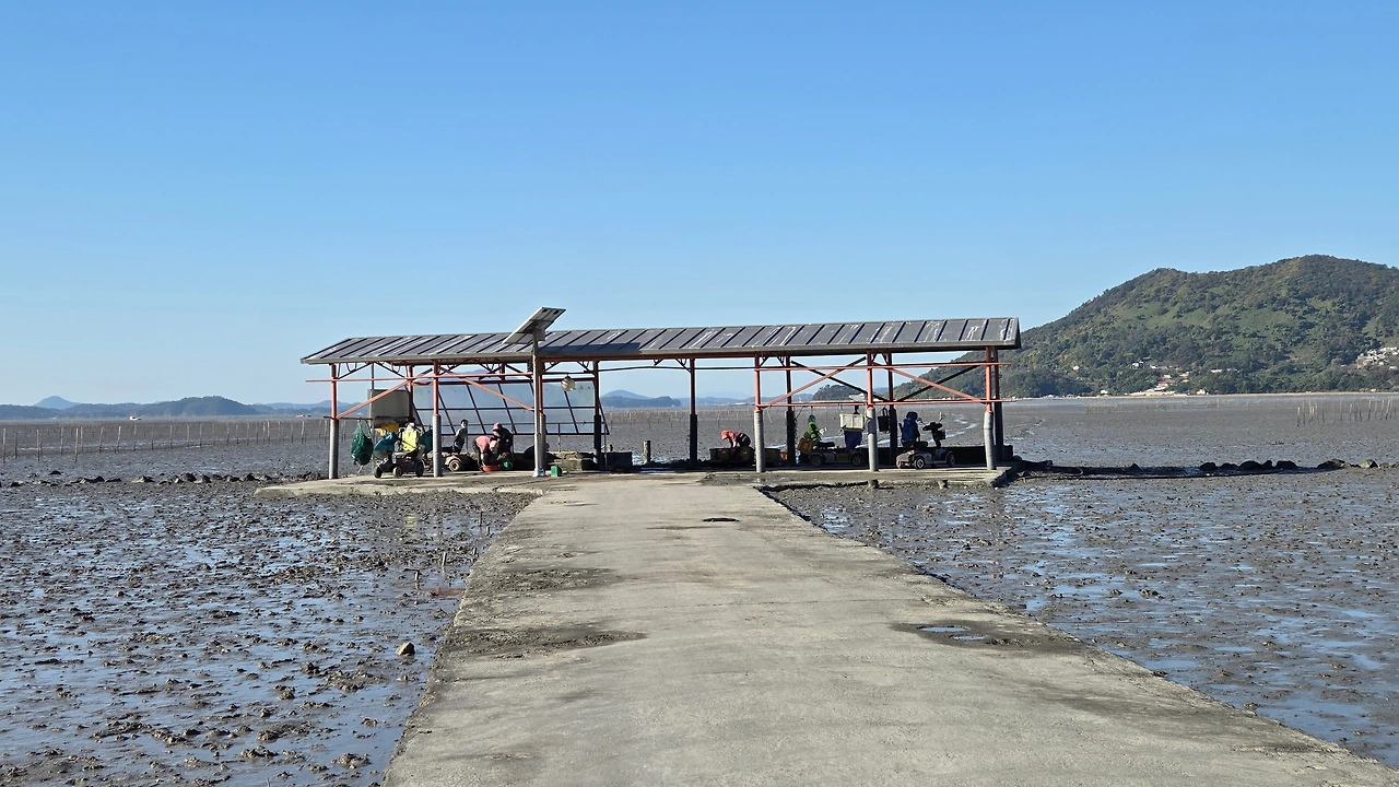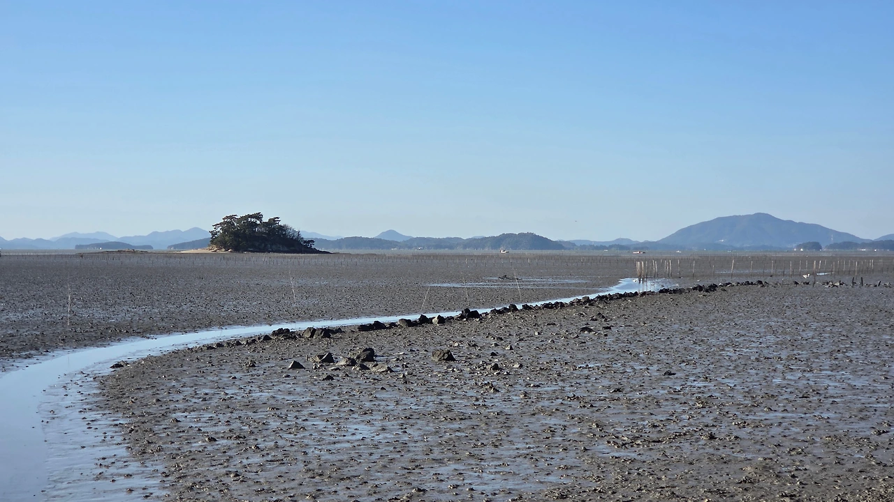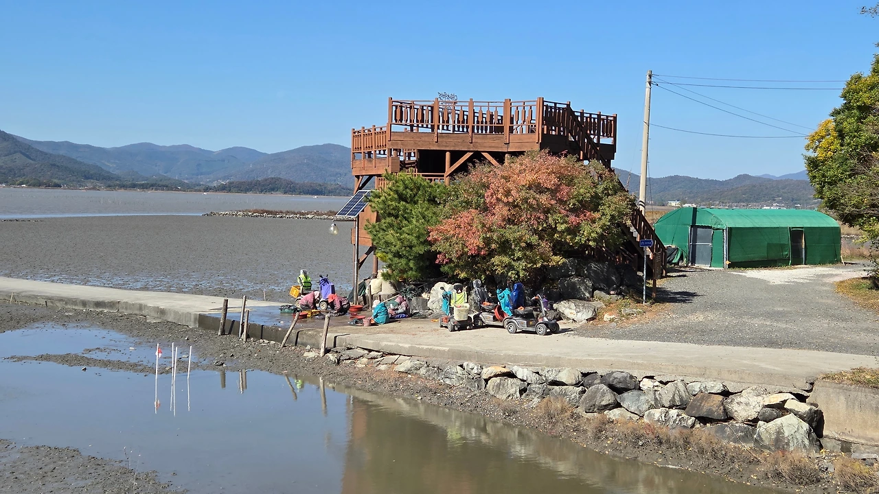 갯벌 중간에 있는 작업장에서 작업을 하다가