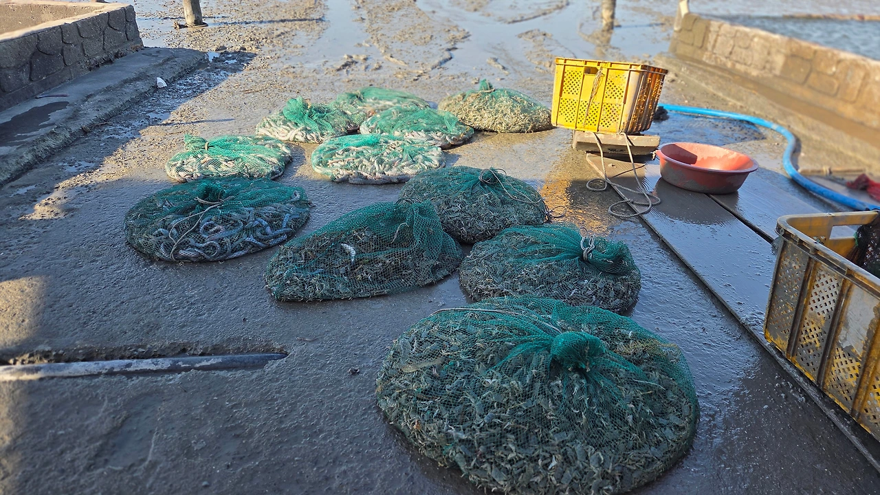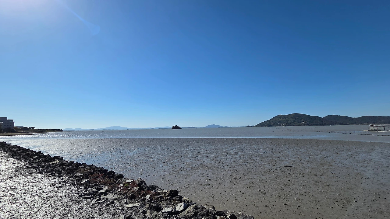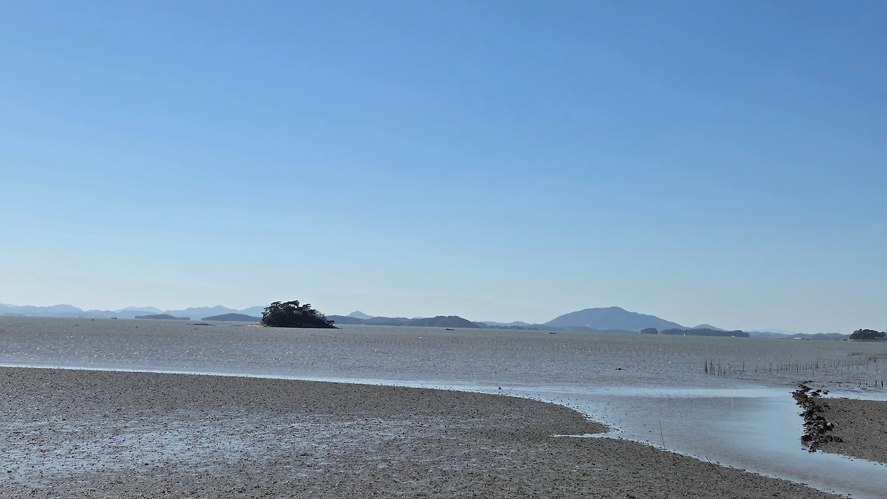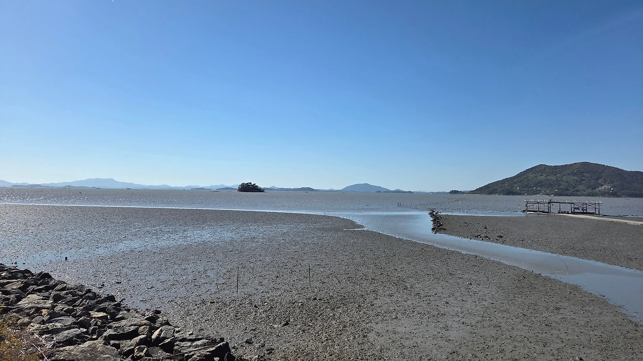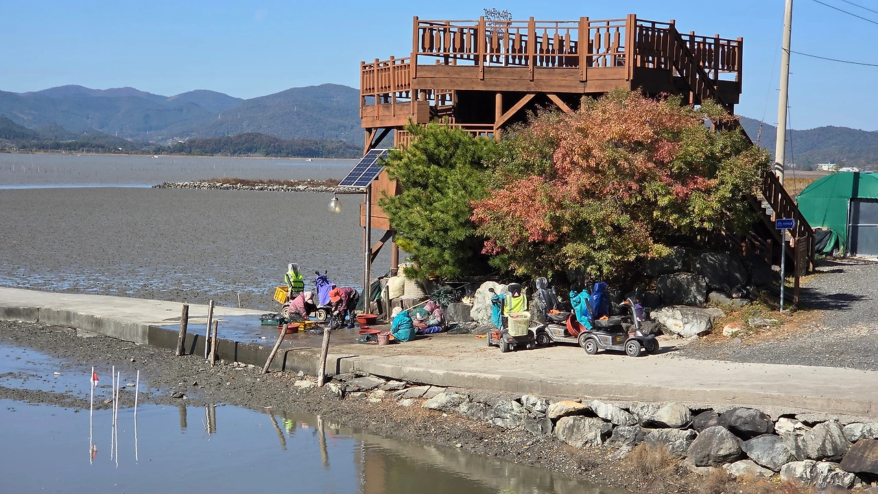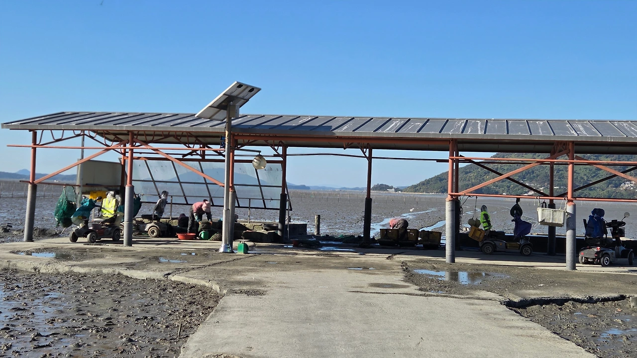 갯벌 중간에 있는 작업장에서 작업을 하다가
