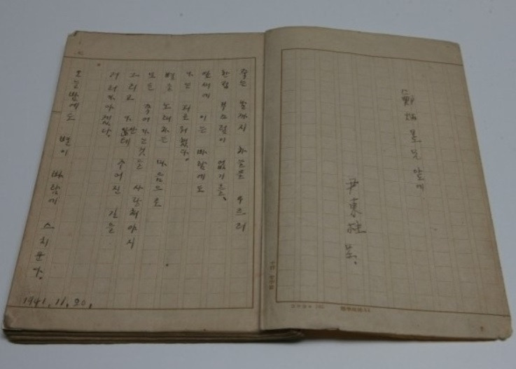 윤동주 시인은 생전에 자신이 직접 쓴 3권의 자필 시집을 남겼다 『나의 습작기의 시 아닌 시』, 『창(窓)』, 『하늘과 바람과 별과 시』 이렇게 3권 중에 대부분의 사람들은 마지막에 쓴 『하늘과 바람과 별과 시』는 잘 알고 있다 초기에 쓴 『나의 습작기의 시 아닌 시』와 『창(窓)』은 원고지 노트에 쓴 작품들이고, 연희전문학교 졸업 기념으로 만든 『하늘과 바람과 별과 시』는 400자 원고지에 쓴 다음, 반으로 접어서 책 형태로 만들어져 있다 그래서 보통 사진 자료에는 접었던 부분을 다시 펴서 촬영한 이미지들이 많다
