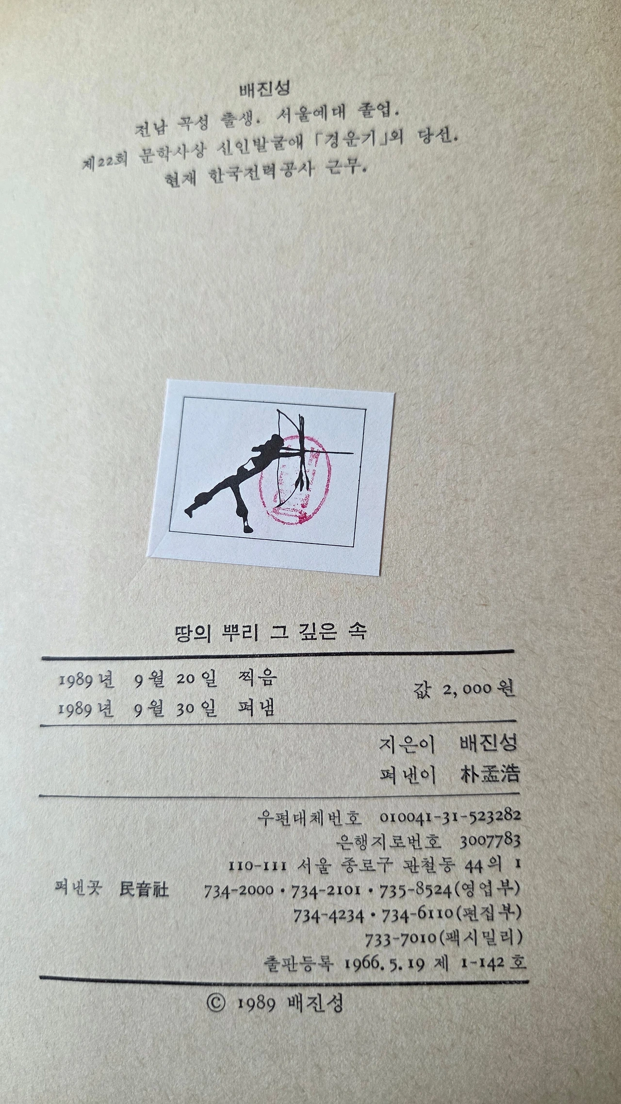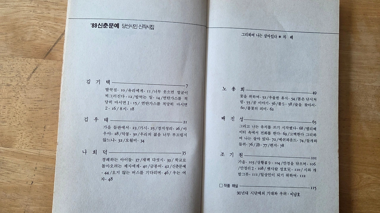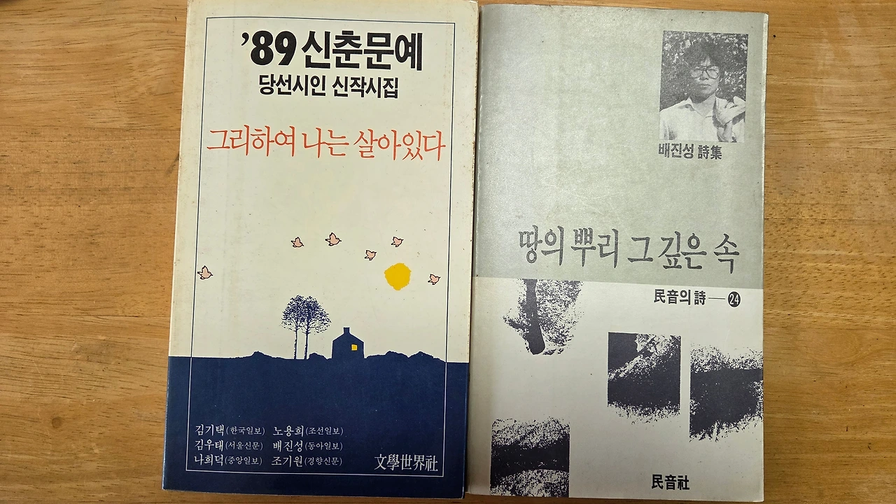 이어도공화국 베이스캠프 농막에서 방을 치우다가 두 권의 책을 발견했다 『'89 신춘문예 당선 시인 신작시집 그리하여 나는 살아있다』와 배진성 시인의 첫 시집 『땅의 뿌리 그 깊은 속』이었다 발행일이 1989년 9월 10일과 1989년 9월 30일이었다 그러니까 두 권 모두 1989년 9월이었다 그때를 생각하니 많은 생각이 떠올랐다 전생의 나는 그렇게 그곳에 있었다 그곳에서 지금껏 나를 기다리고 있었다