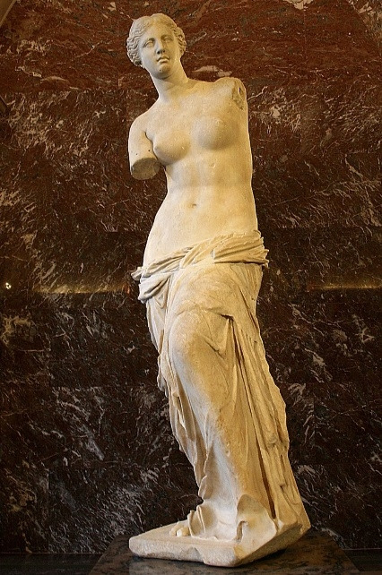 밀로의 비너스상은 고대 그리스의 대표적인 조각상 가운데 하나로, 기원전 130년에서 100년 사이에 제작된 것으로 추정된다고 한다 그리스 신화에서 사랑과 미를 관장하는 여신인 아프로디테를 묘사한 대리석상이라고 한다 길이는 203cm라고 하며 헬레니즘 시대의 작품이라고 한다 이 조각상은 1:1.618의 황금 비율이며 8등신이라고 한다 이 작품은 두 팔이 없지만 전문가들의 다양한 연구로 어느 정도 그 모습을 상상할 수 있다고 한다 왼팔은 사과를 꽉 잡고 있는 형태였고 오른팔은 배에 있는 흔적으로 보아, 흘러내리는 옷을 잡고 있는 형태였던 것으로 추정하고 있다고 한다