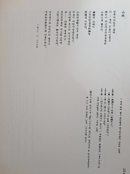 「산림(山林)」// * 이 작품은 1집, 2집, 습유작(낱장), 모두 달라서 사람마다 달리 읽는다