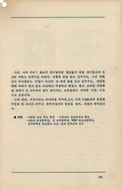 꿈과 삶과 글이 모두 한결같이 참으로 아름다운 시인이 있다 내가 아는 시인들 중에 가장 아름답고 가장 따뜻한 시인, 내가 아는 시인들 중에 가장 부드러우면서 가장 강한 시인, 내가 아는 시인들 중에 가장 겸손하면서도 가장 깊은 시인, 내가 아는 시인들 중에 가장 배려할 줄 알면서도 투명한 시인, 내가 아는 시인들 중에 내가 가장 배우고 싶은 시인, 내가 아는 시인들 중에 내가 가장 존경하는 시인, 내가 아는 시인들 중에 가장 어머니의 정을 간직한 시인, 내가 아는 시인들 중에 가장 아름다운 죽음의 형식을 꿈꾸는 시인, 묘비 대신 벤치를 꿈꾸는 시인, 산목련보다 곱고 벤치보다 따뜻한 시인, 이렇게 아름답고 따뜻한 시인이 이미 잊힌 시인까지 챙겨주는 정성까지, 참으로 생각할수록 고맙고 감사하고....., 세상에는 이렇게 아직도 따뜻한 사람들이 있다 죽어서도 나란히 앉아서 손을 잡고 푸른 바다를 보고 싶은 따뜻한 벤치 같은 사람들이 있다