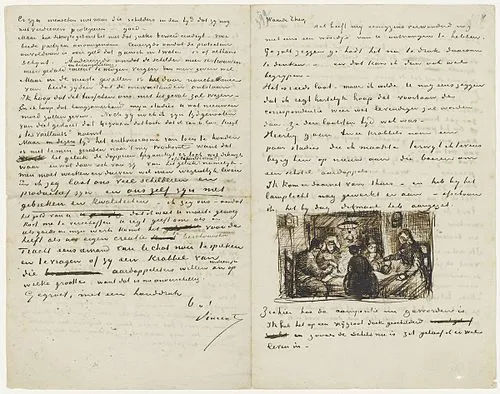 1885년 4월 빈센트는 그의 남동생에게 자신의 첫 걸작인 "감자 먹는 사람들"에 대해 편지에 적었다. 그는 당시 처음으로 여러 인물이 들어간 복잡한 그림을 그리고 있었으며, 편지에 그림의 스케치를 그려 보냈다.