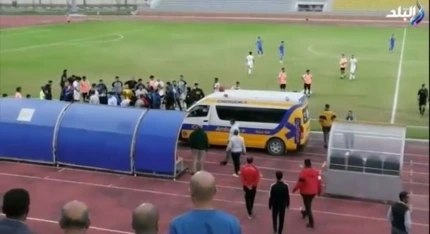 지난 2일(현지시각) 이집트 2부리그 클럽 알마지드의 감독 아드함 엘 셀하다르(53)가 팀의 연장 2분 결승골 직후 심장마비로 사망했다. 사진은 구급차가 경기장에 들어오는 장면이다. /유튜브