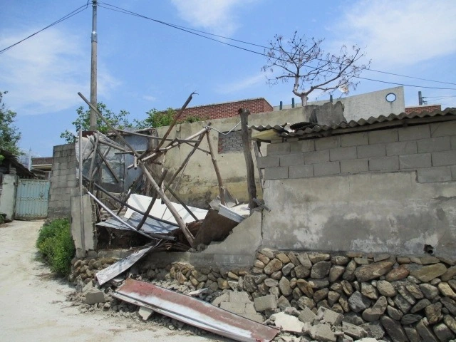 아마도 저번 태풍에 창고 담장이 무너진 것 같습니다