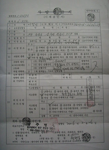 시체 검안서를 읽으며 온 몸으로 울 수 밖에