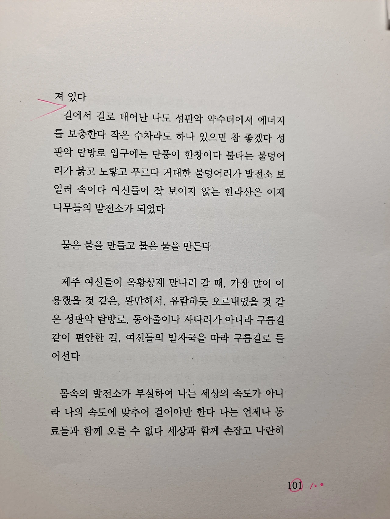 101쪽 <나무 발전소 2> 둘째 행에서 연으로 구분