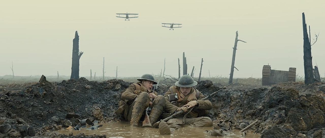 <1917>은 그럼에도 불구하고 예전 정공법으로 물리적 제약이 많은 전쟁 이야기를 롱테이크로 만들어낸 영화입니다. 고프로처럼 움직이는 카메라는 CG 보다도 신기하고 끊김 없는 촬영은 극강의 몰입감을 선사하죠. 감정이 빠져나갈 틈을 주지 않습니다. 관객은 대체로 주인공의 행복을 바라지만 주인공이 극한의 상황에 놓이면 더 감정 이입하게 됩니다. 제1차 세계대전 당시 1,600명의 목숨을 살리기 위해 전쟁터 한복판을 가로질러야 했던 스코필드의 이야기는 촬영과 완벽히 짝을 이뤄 극이 흘러갈수록 더 큰 효과를 발휘합니다.