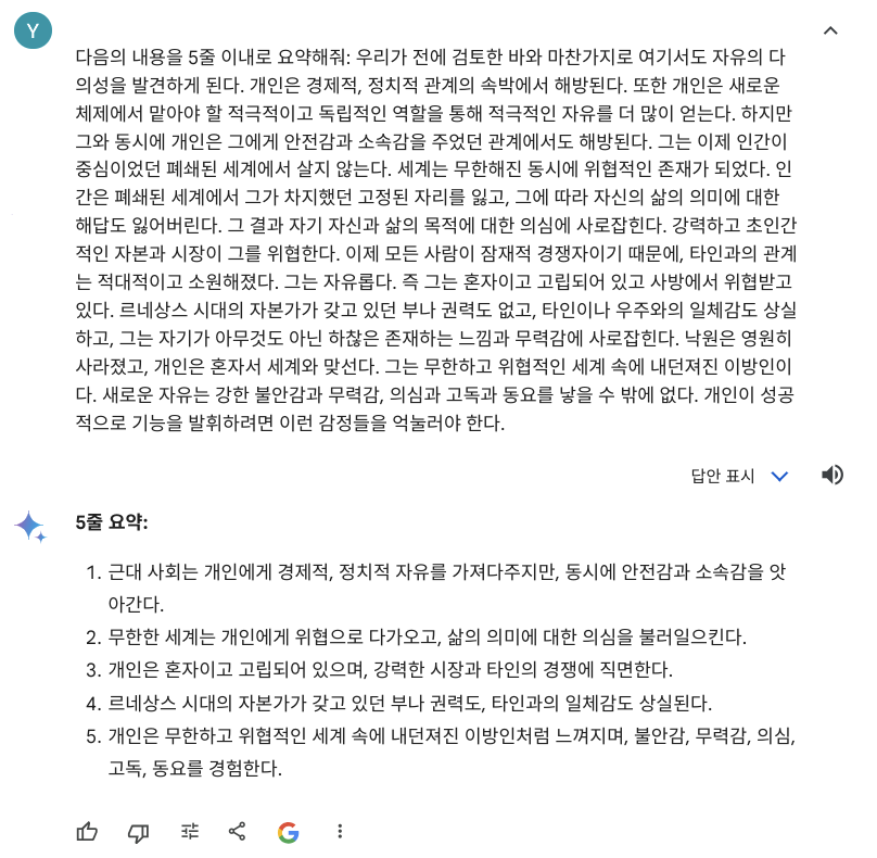 위의 5가지 모두 AI가 아닌 사람에게 질문을 한다고 해도 적용될 수 있지 않을까요? 알려진 프롬프트 엔지니어링 팁 중 하나는 LLM을 인턴이라고 생각하고 지시를 내리라고 되어 있습니다. 새롭게 나온 용어이지만 결국 본질은 효과적인 커뮤니케이션에 대한 접근법이라고 느껴져서 작성해 보았습니다.