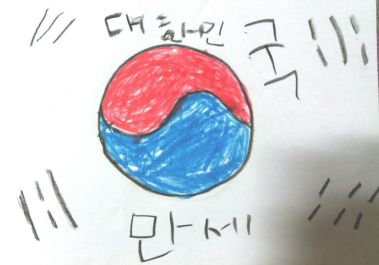 태극기를 그려 대문 앞에 붙여야 한다길래 삼일절 이후 또 태극기를 그려 보았다.