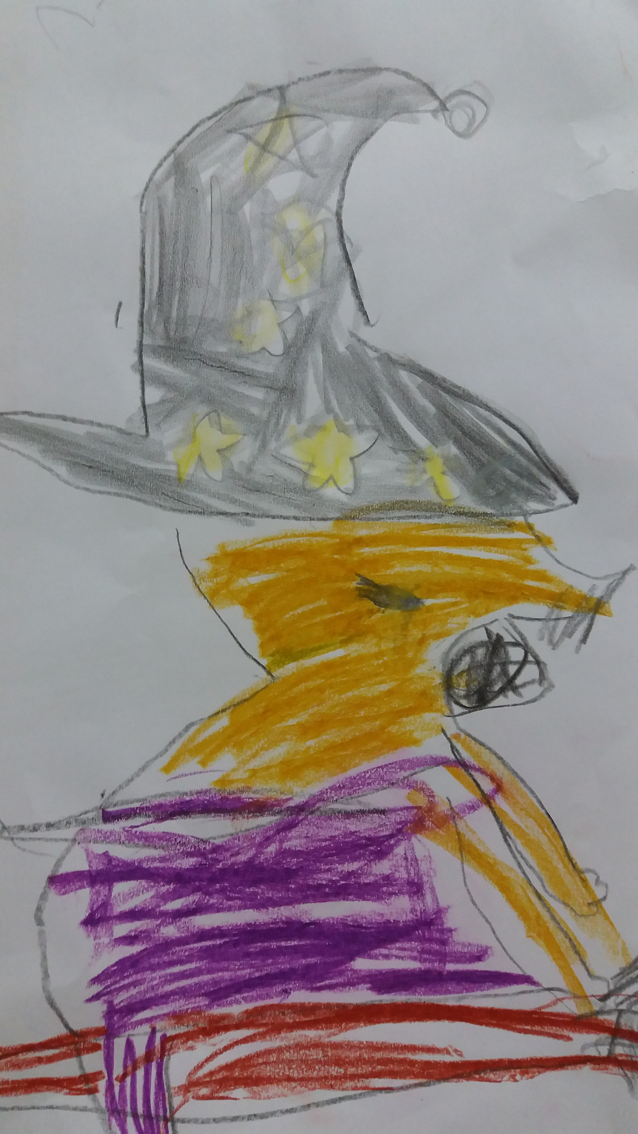 마녀는 빗자루를 타고 휘청거리며 노래를 불렀습니다.