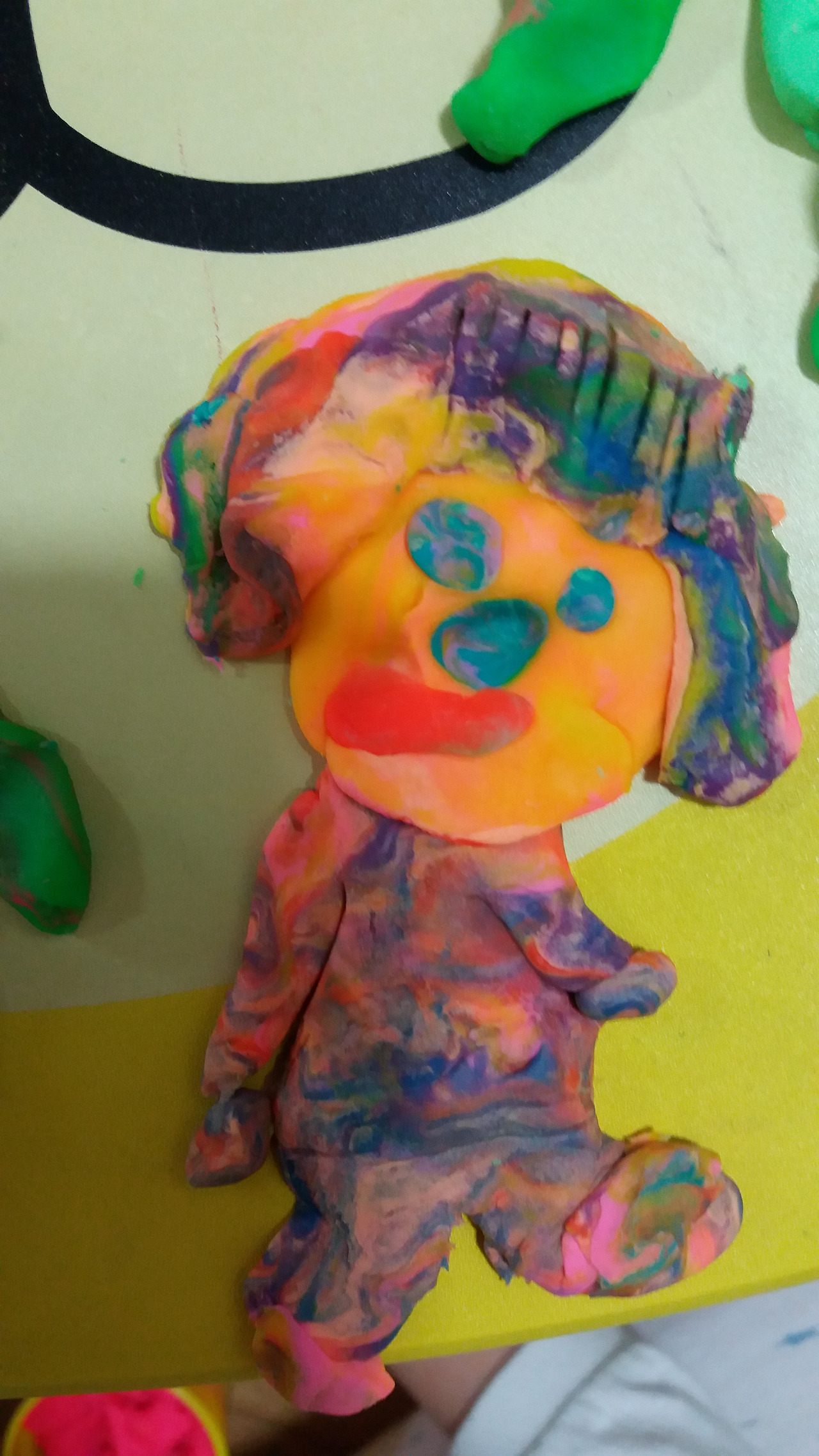 검은색 박쥐는 집에서 먹이를 먹다가 이빨도 못 닦고 파티를 알리는 시계 소리에 급하게 날아왔습니다. 그리고는 바로 파닥파닥 신나게 춤을 췄습니다.