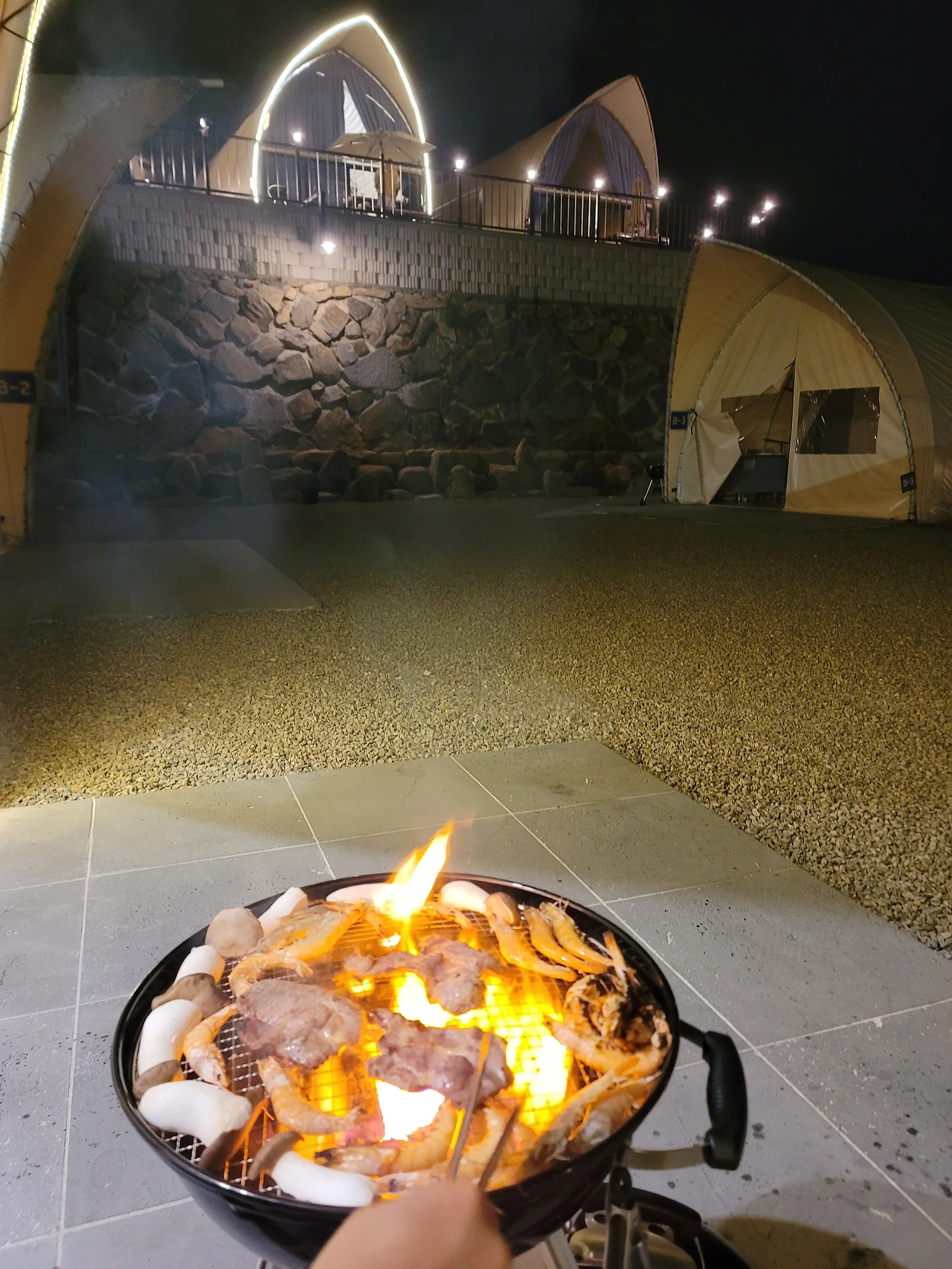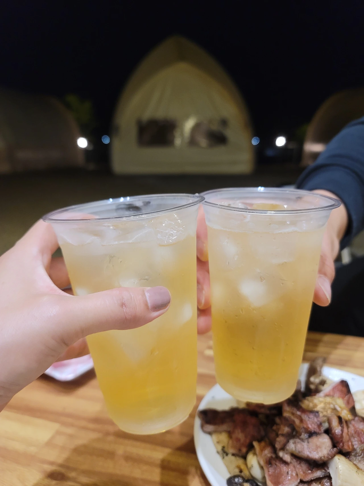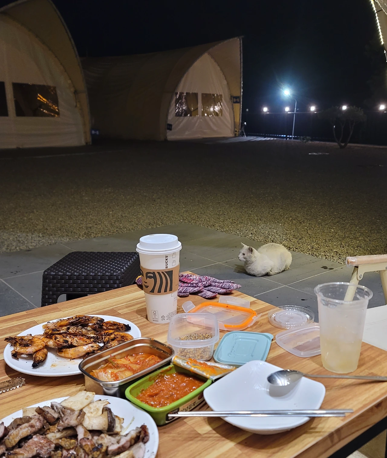 잠시 아이들과 영상 통화를 하고, 우리 글램핑 동에 온 고양이 이야기를 하면서 하하호호, 즐거운 시간을 보낸다. 간단히 하이볼을 마시고, 이런저런 대화를 하며, 그래도 오랜만에 평온하고 좋았다. 닿지 못해 늘 외로웠던 시간에 서로 다가가는 작은 시간이 되었던 것 같다. 가장 가까워도 때로 멀기만 한 부부..