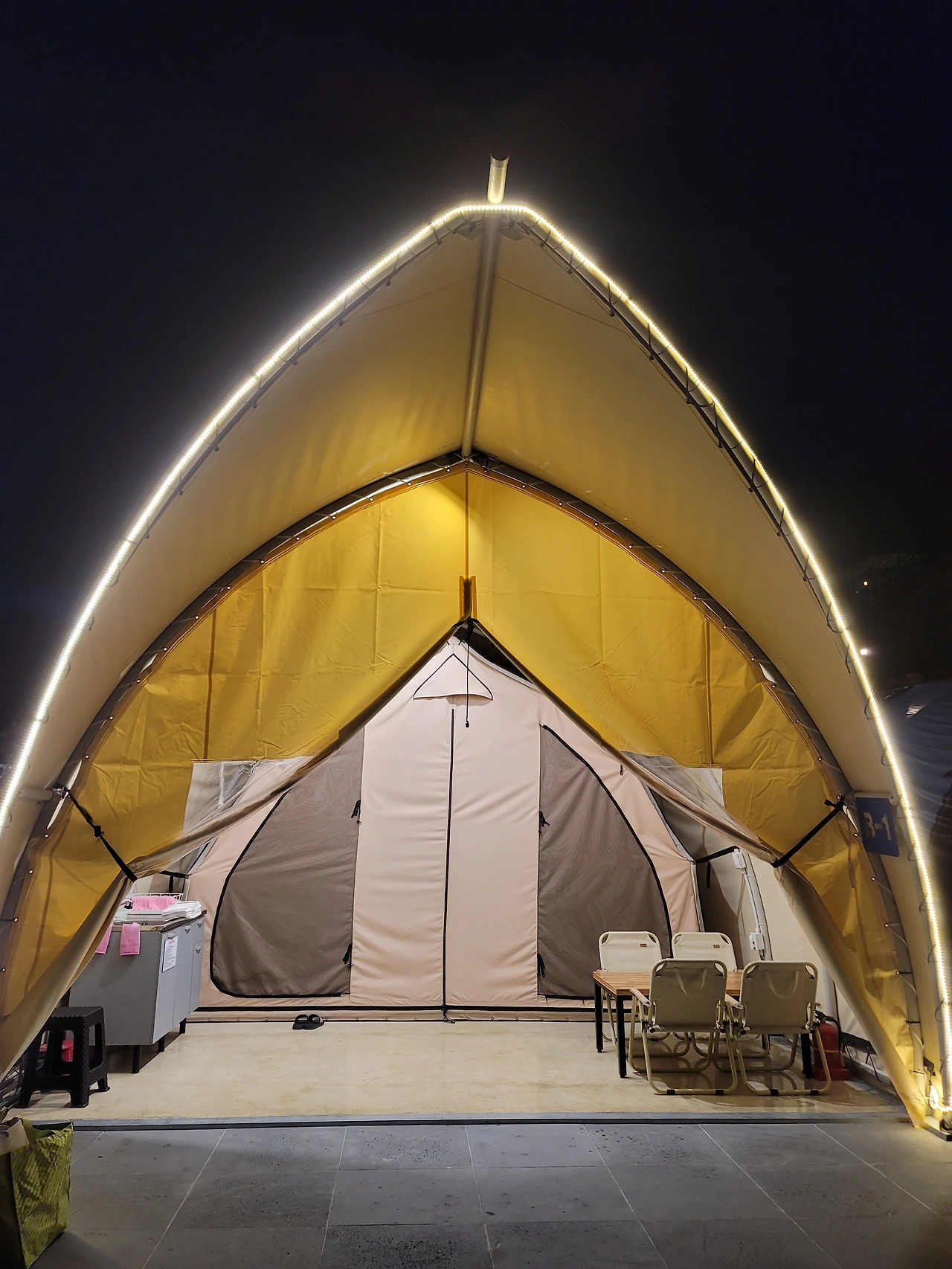 아주 오랜만에.. 약간 서먹하게 그렇게 둘이서, 괜히 아이들 이야기를 꺼내 안주를 삼아 보고, 글램핑을 해보면서, 저녁 두세 시간의 고요와 평온이 감사했다. 세상에 많은 일들이 생긴다. 우리 부부는 지금 어디까지 와 있을까? 고 3 여름에 처음 만나, 결혼까지, 그리고 이제 마흔을 넘긴 우리 둘. 앞으로 더 잘 살아 보기 위해 이렇게 서로를 위한 시간을 더 가져본다.