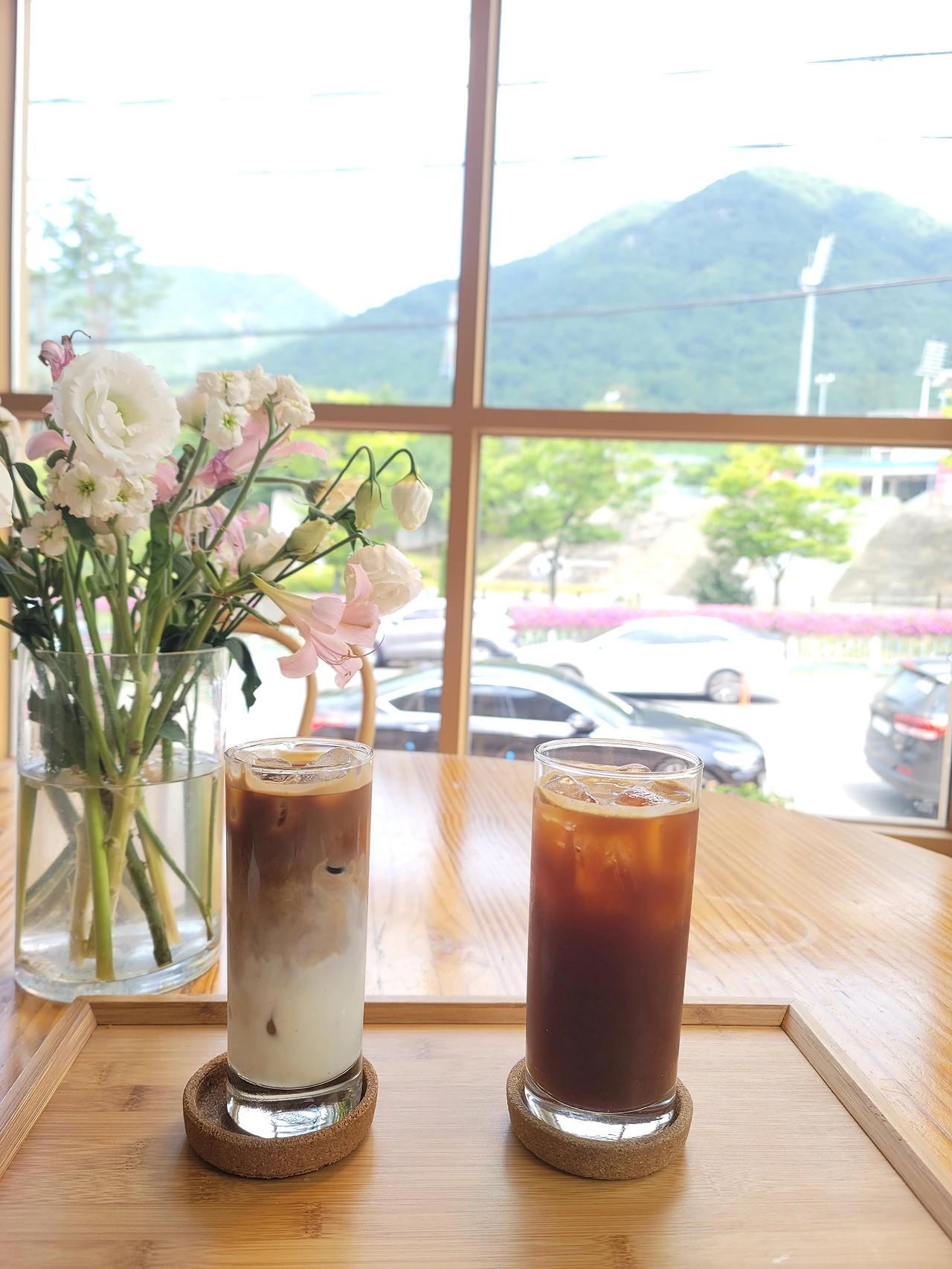 꽃 한 송이가 예쁘게 피어 충만하고 맛있고 향긋한 커피에 마음이 녹는다.