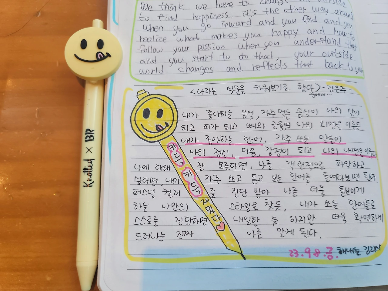 이렇게 말을 조금씩 바꿔 가면서 좋은 일들을 삶으로 많이 끌어당겨 오는 행복한 지구별 여행이 되면 좋겠다. 우리는 하나의 연결된 마음을 쓰고 있으니 내가 먼저 행복해지면, 연결된 그도 그 행복을 같이 공유하게 되지 않을까? 그래서 오늘도 내가 먼저 많이 행복한 하루다.