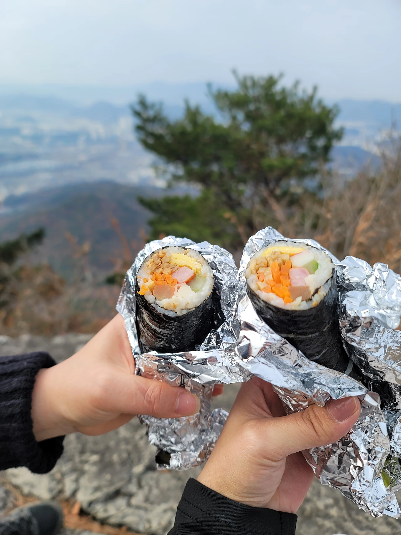 산의 길을 안내해 줄 수는 있어서 결국 올라야 하는 주체는 바로 나다. 정상에 도착하니 친구가 직접 싼 김밥을 건넨다. 정말 꿀맛 같다. 김밥을 먹으며 발아래의 그 모든 풍경들을 껴안는다. 사람 살이가 이렇게 장난감 세상 속 일 같다. 멀리서 보면 참 조그맣고 아무것도 아니다. 그저 조그마한 점들에 지나지 않는 우리들이 마치 거대한 우주에 하나뿐인 것처럼 그곳에는 온갖 희로애락이 꿈틀대며 역동하는 곳